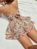 Floral Bliss: Allover Print Backless Cami Romper for Spring Getaways