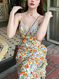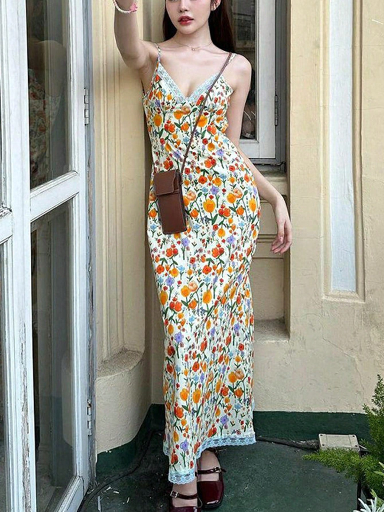 Floral Bliss: Small Floral Patchwork Lace Spaghetti Strap Dress