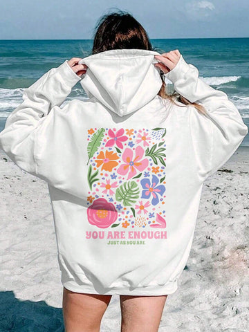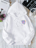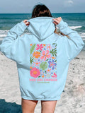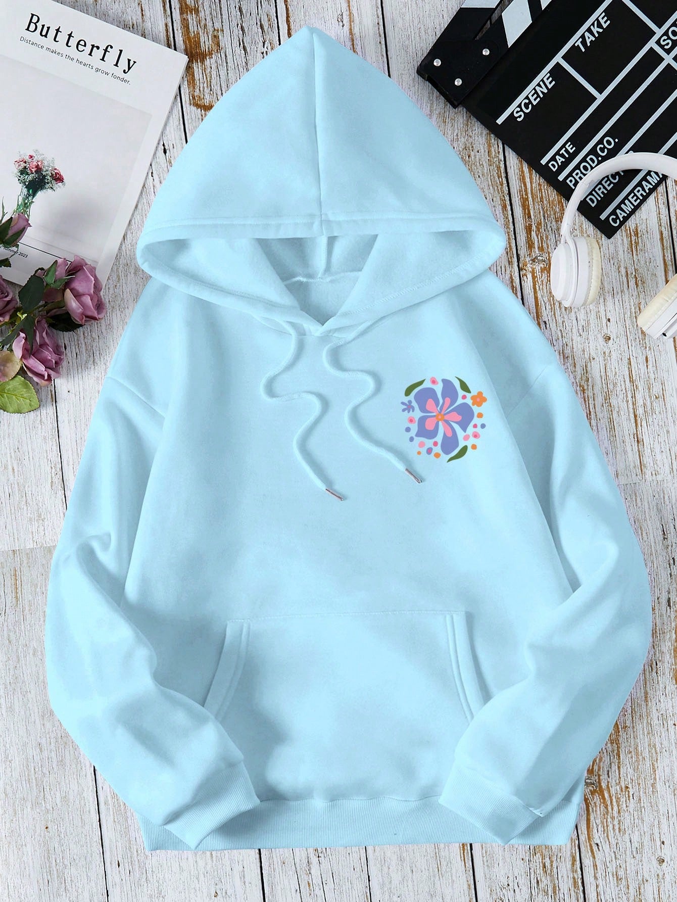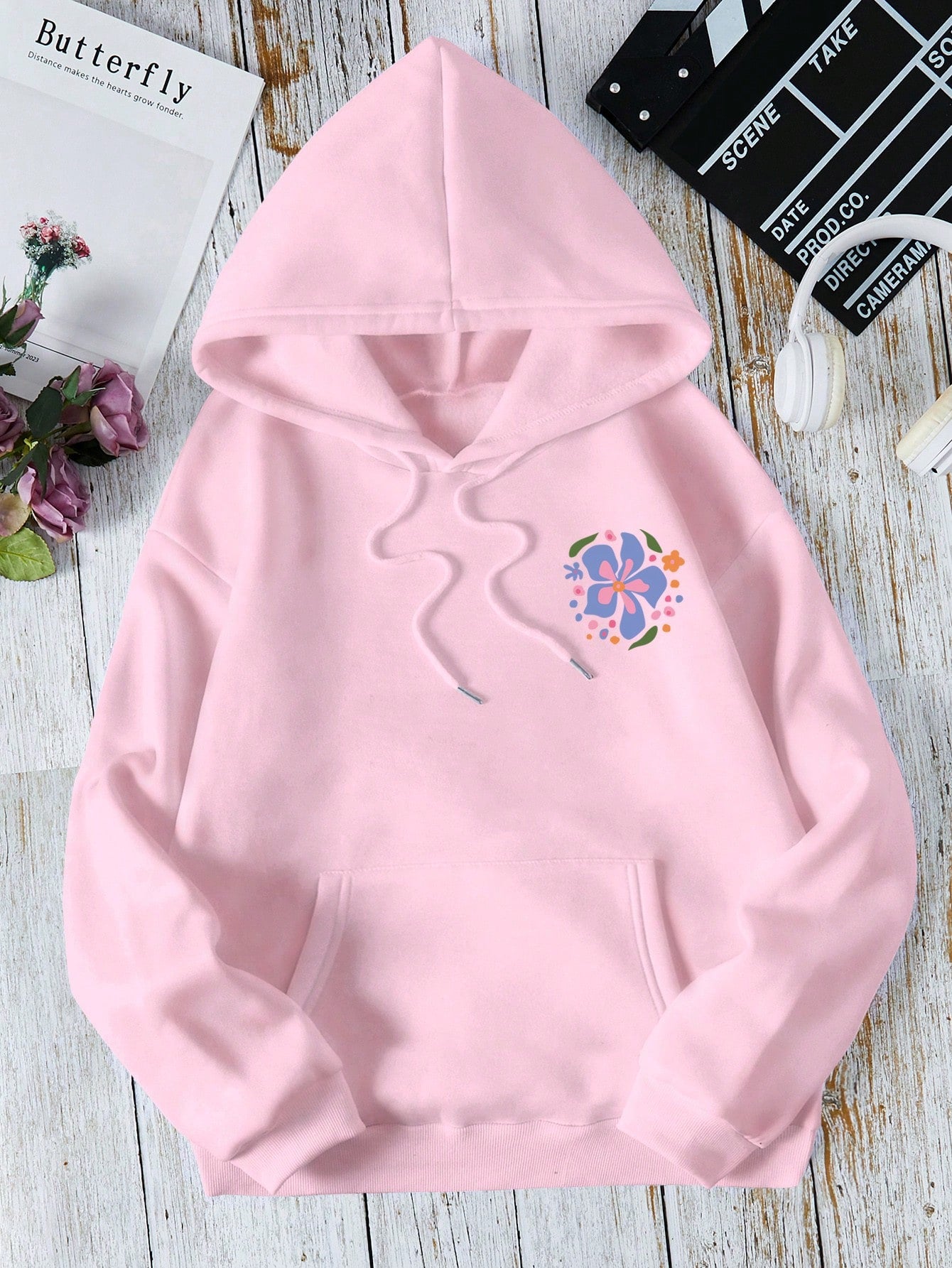 Floral Bliss: Women's Drop Shoulder Drawstring Hooded Sweatshirt