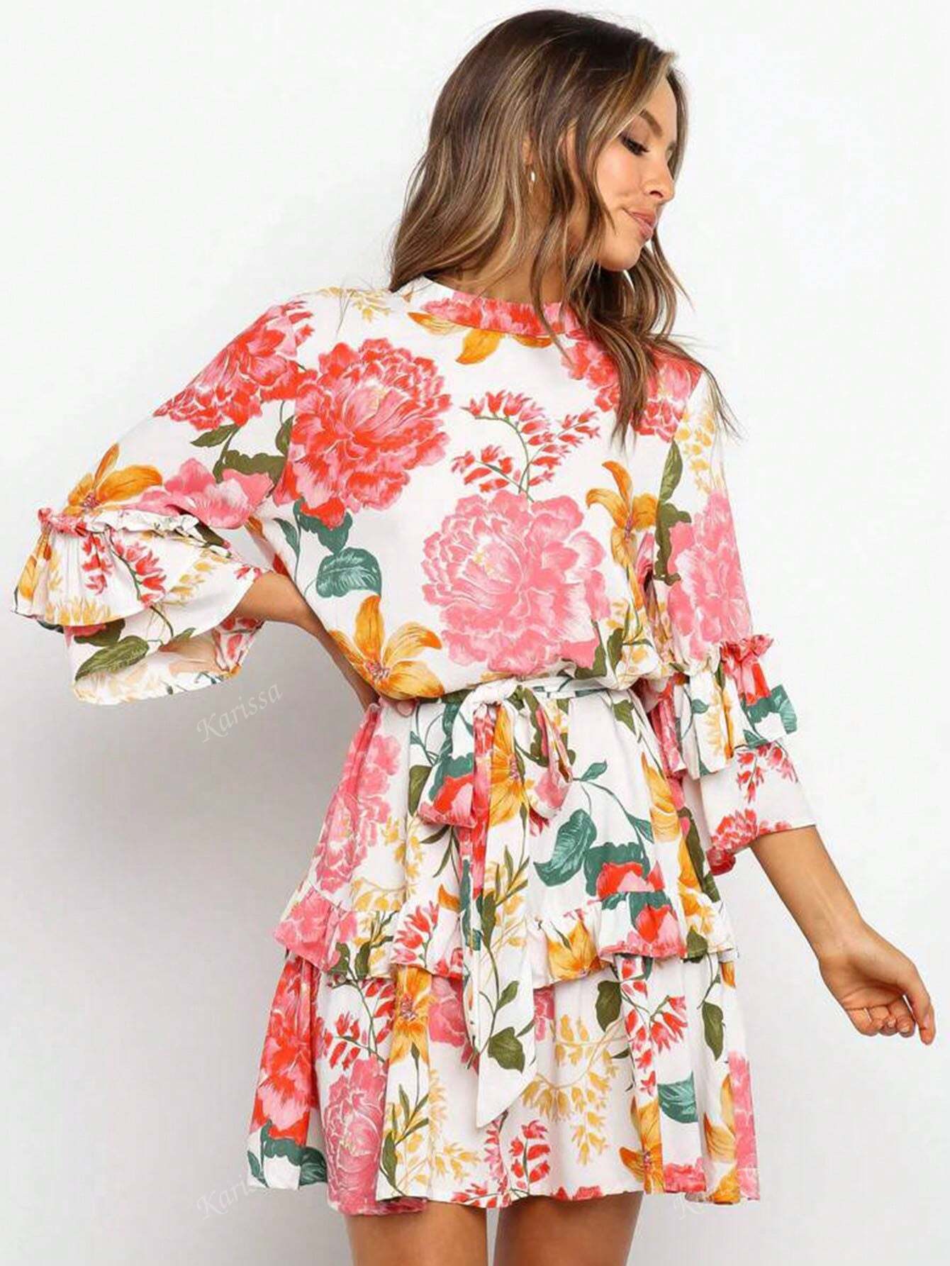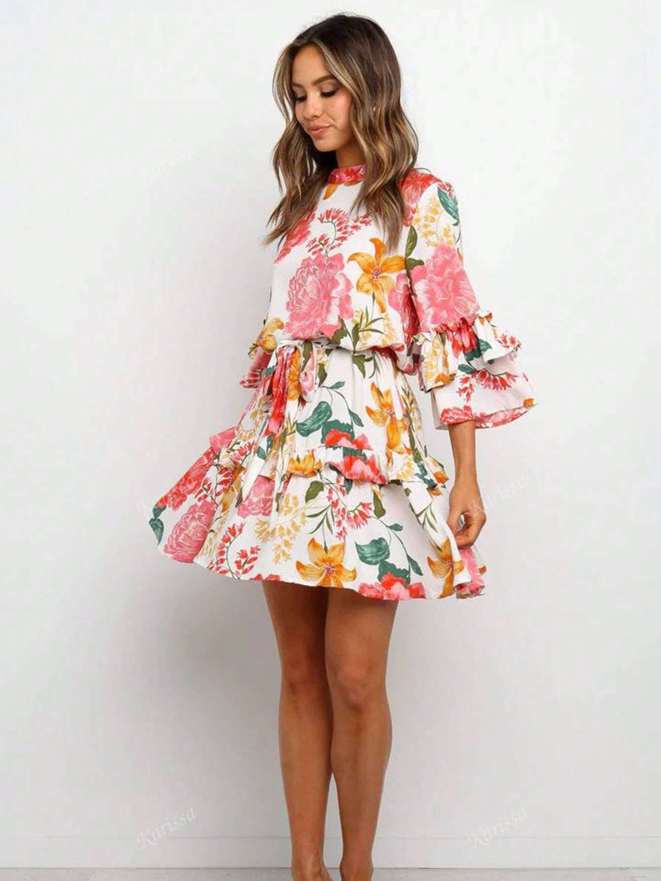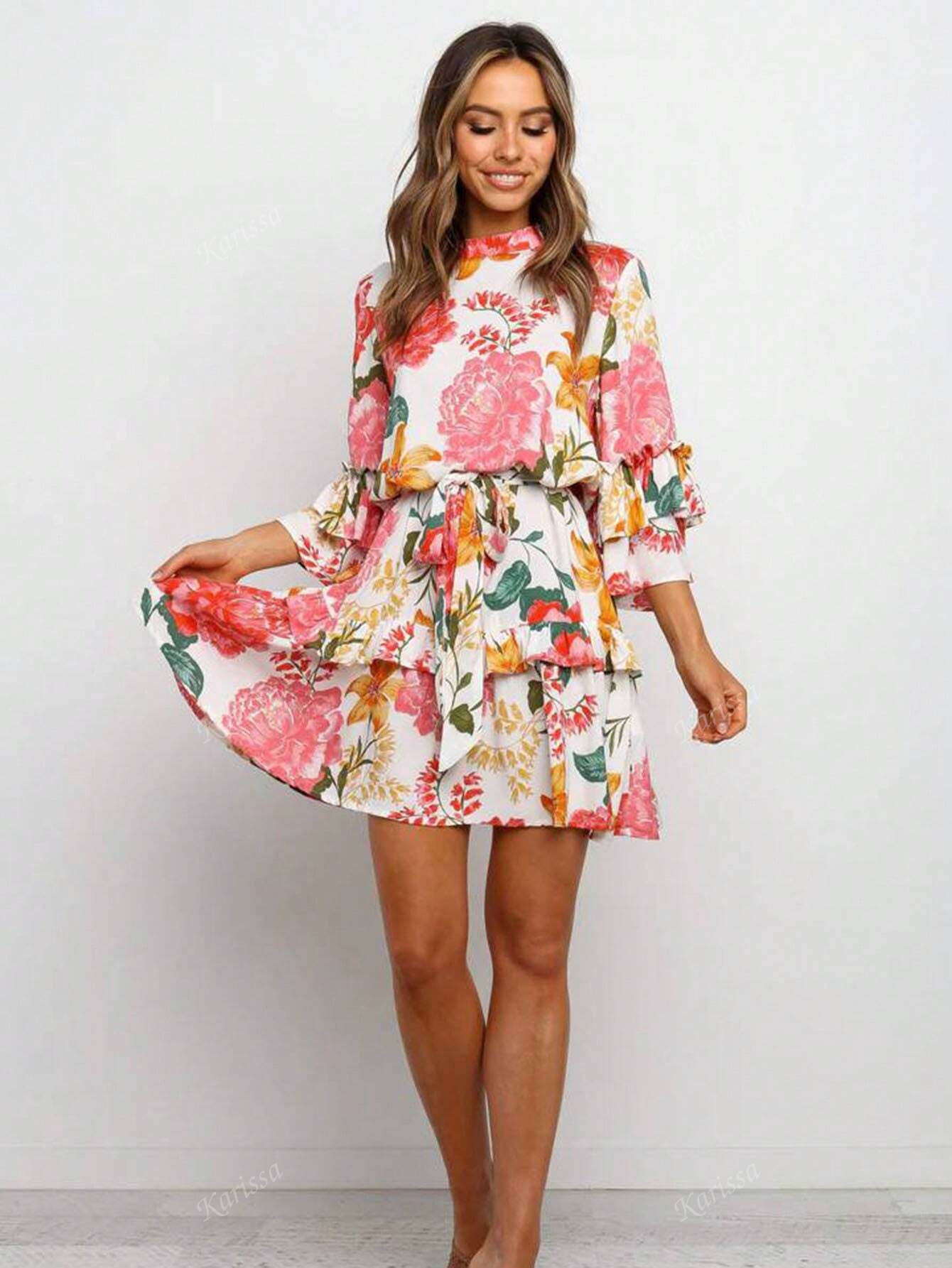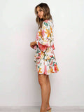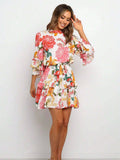 Floral Delight: Casual Long Sleeve Crew Neck Dress for Effortless Style