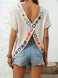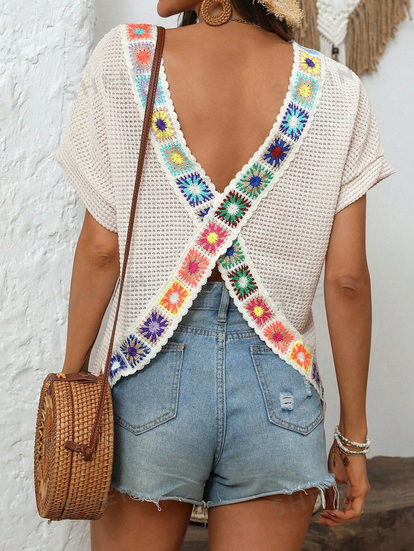Floral Dream Crochet Knitted T-Shirt with Cross Back Detail