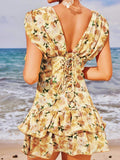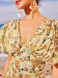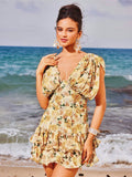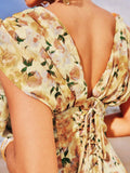 Floral Elegance: Drop Shoulder Chiffon Fit and Flare Dress