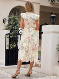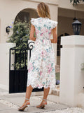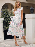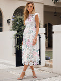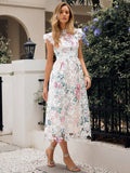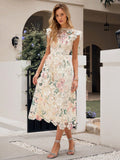 Floral Elegance: Stand Collar Lace Cap Sleeve Long Dress