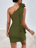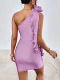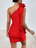 Floral Fantasy: Asymmetrical Neck Dress with 3D Flower Decoration