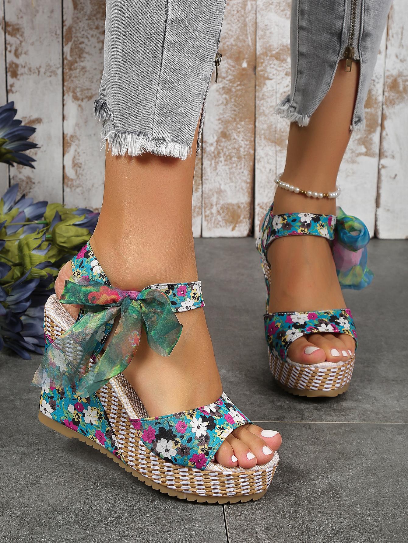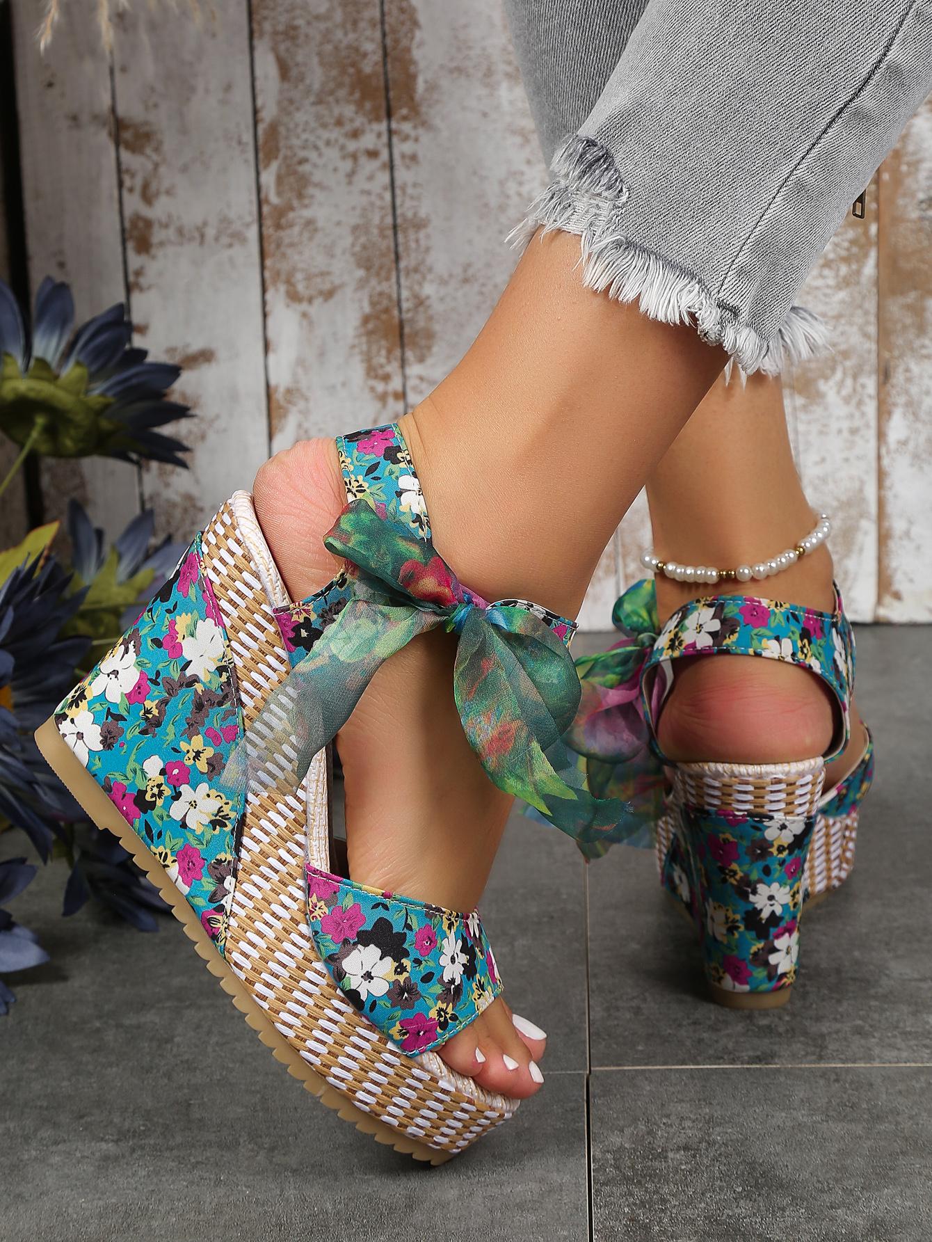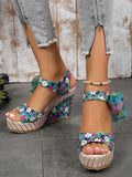 Floral Fantasy: Color-Block Ankle Strap Sandals for Summer Vacations