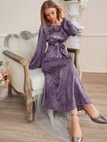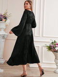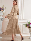 Floral Fantasy: Floral Jacquard Flounce Sleeve Satin Dress
