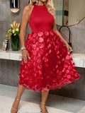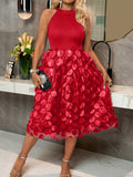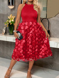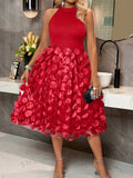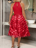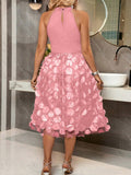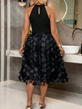 Floral Fantasy: Plus Size Women's Halter Neck Dress for Banquets and Parties