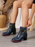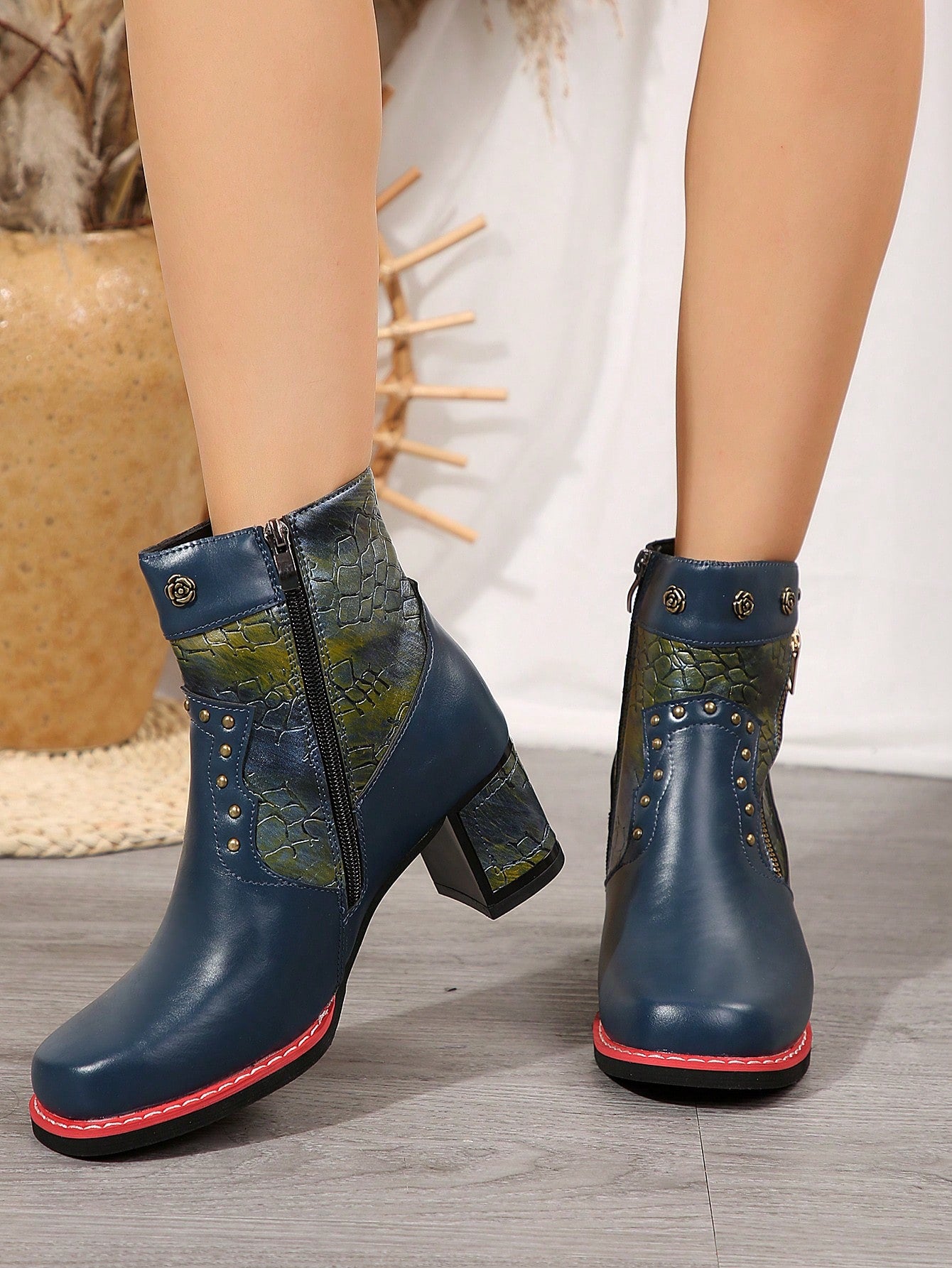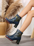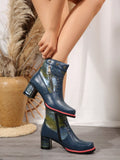 Floral Fantasy: Western Style Leather Ankle Boots for Autumn and Winter