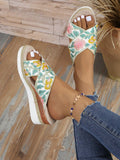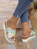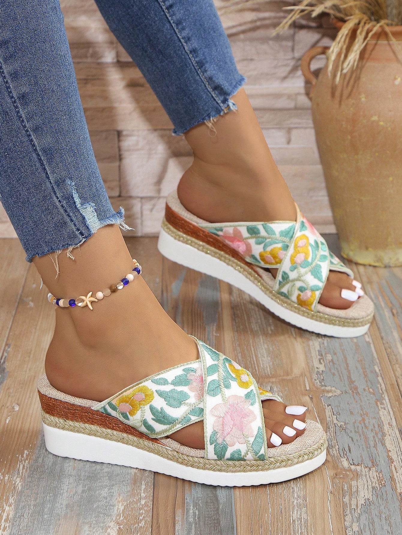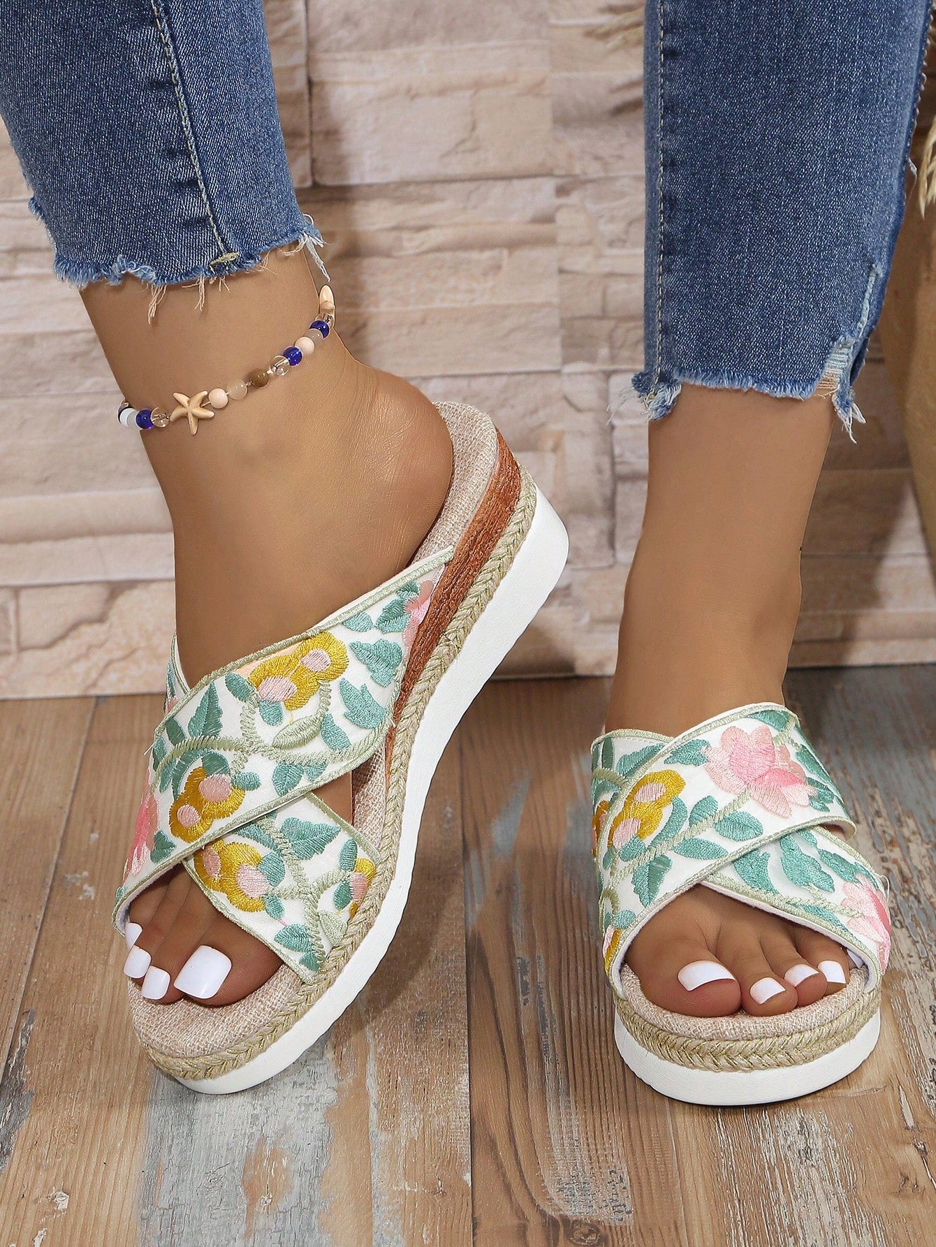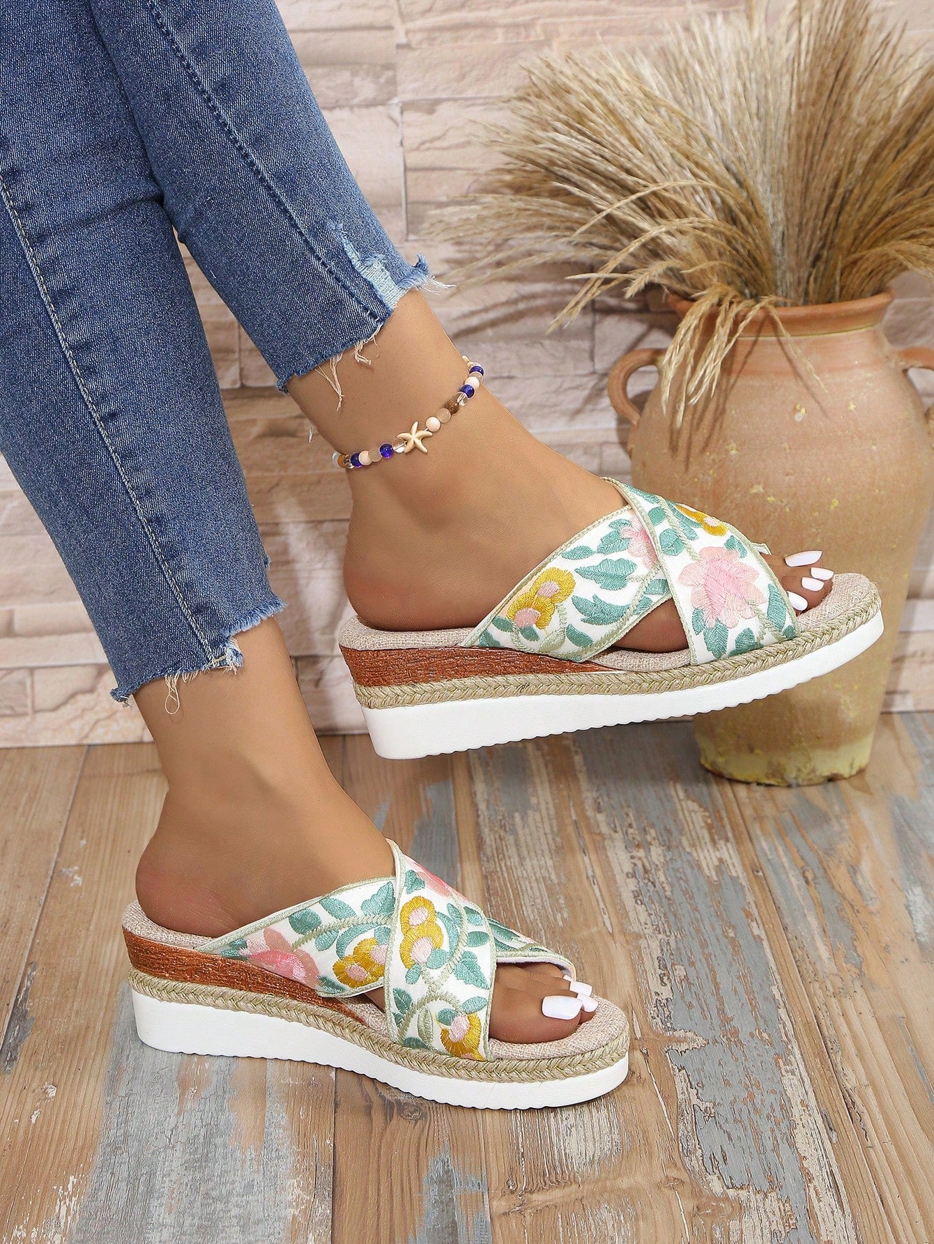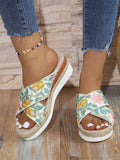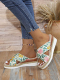Floral Fantasy: Women's National Style Wedge Heel Slippers