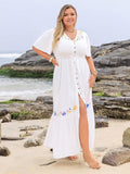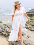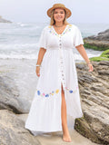 Floral Haven: Plus Size Embroidered Ruffle Dress for Summer Vacations