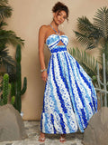 Floral Print Backless Halter Long Dress - Perfect for Holiday Elegance