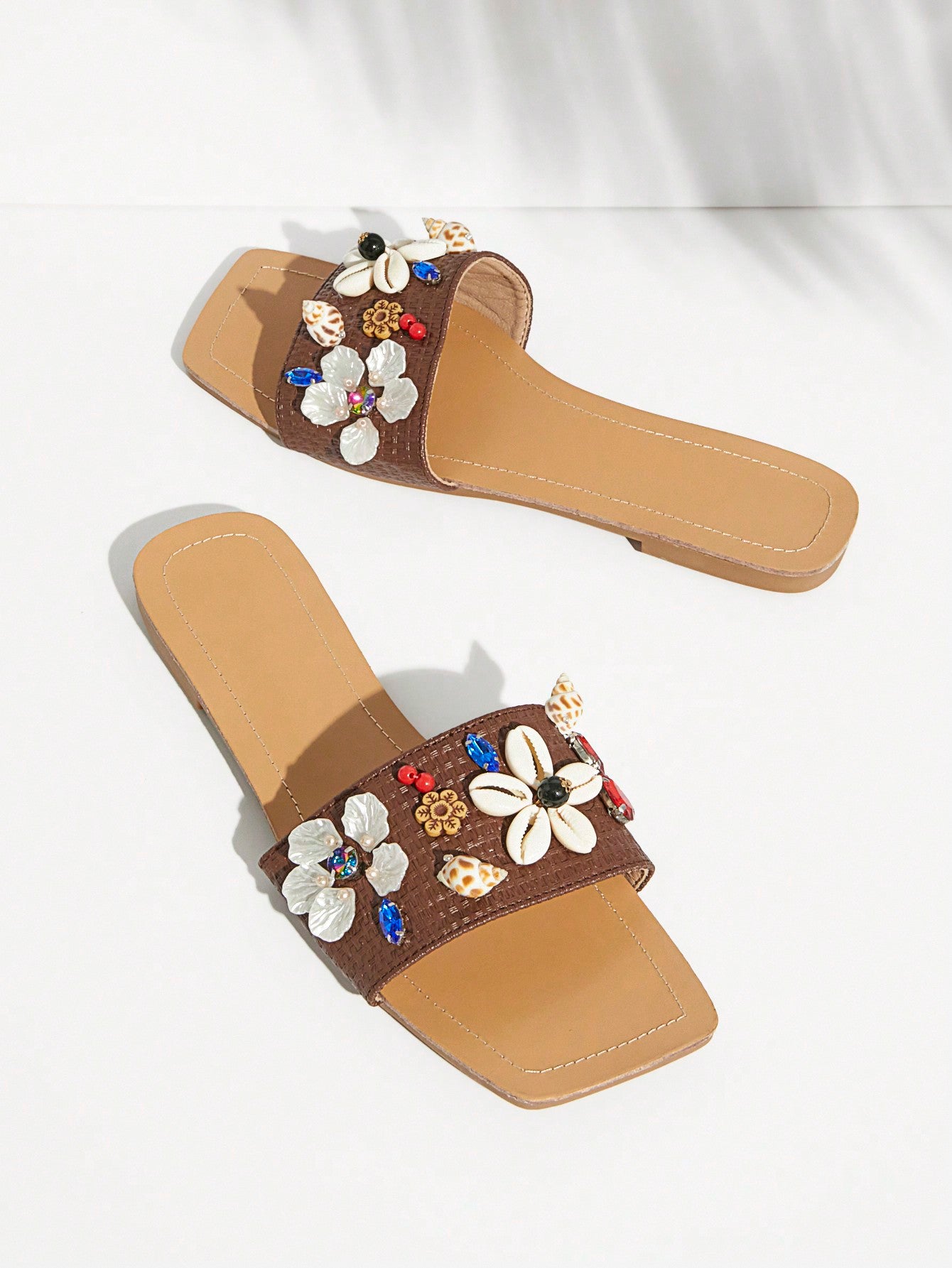 Introducing Flower Power: Stylish Summer Flat Sandals for Women. These sandals are designed with both fashion and comfort in mind, featuring a chic floral design that will elevate any outfit. Made with high-quality materials, they are perfect for all-day wear. Step into summer with style and ease.