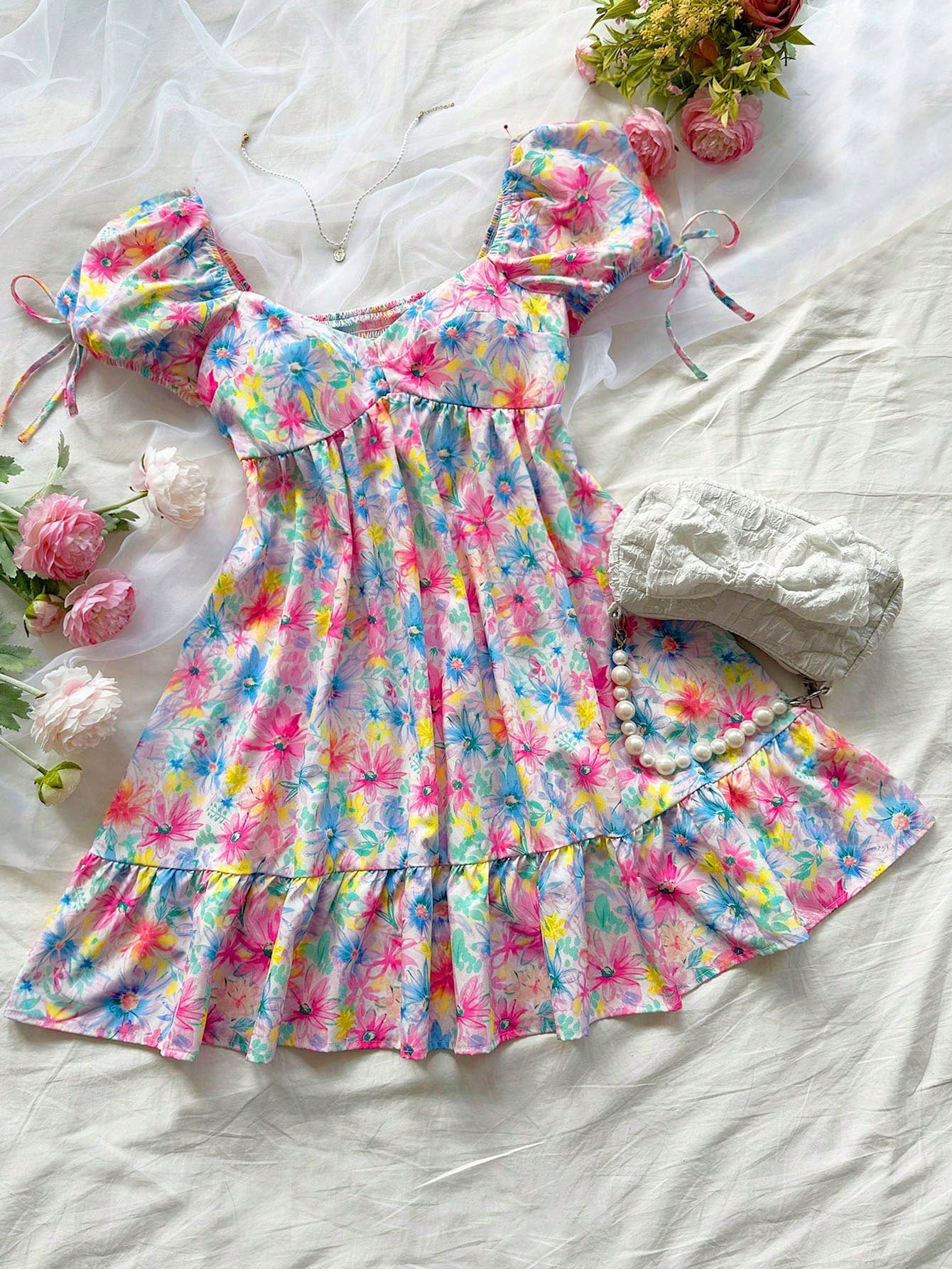 Flower Power: Women's Vacation Watercolor Romantic Flowers Dress