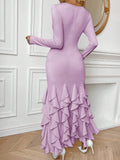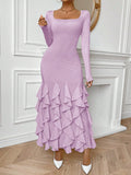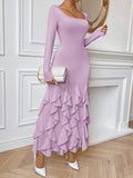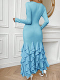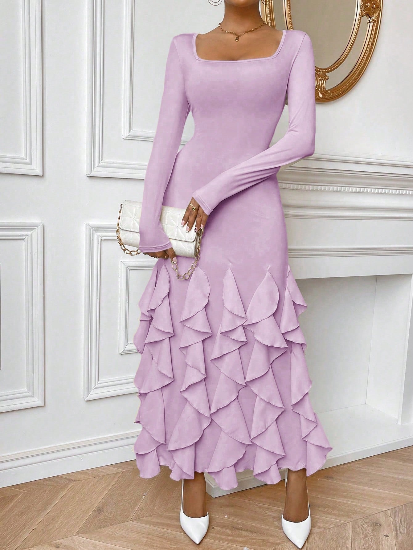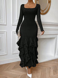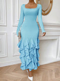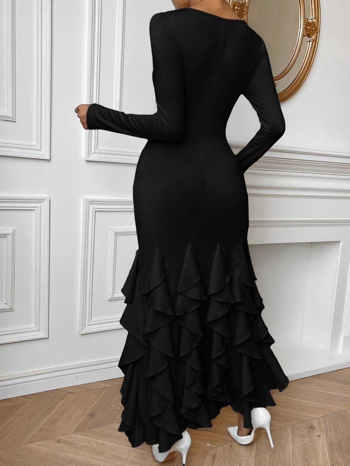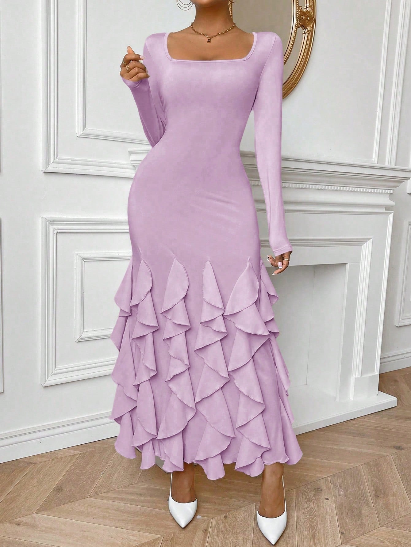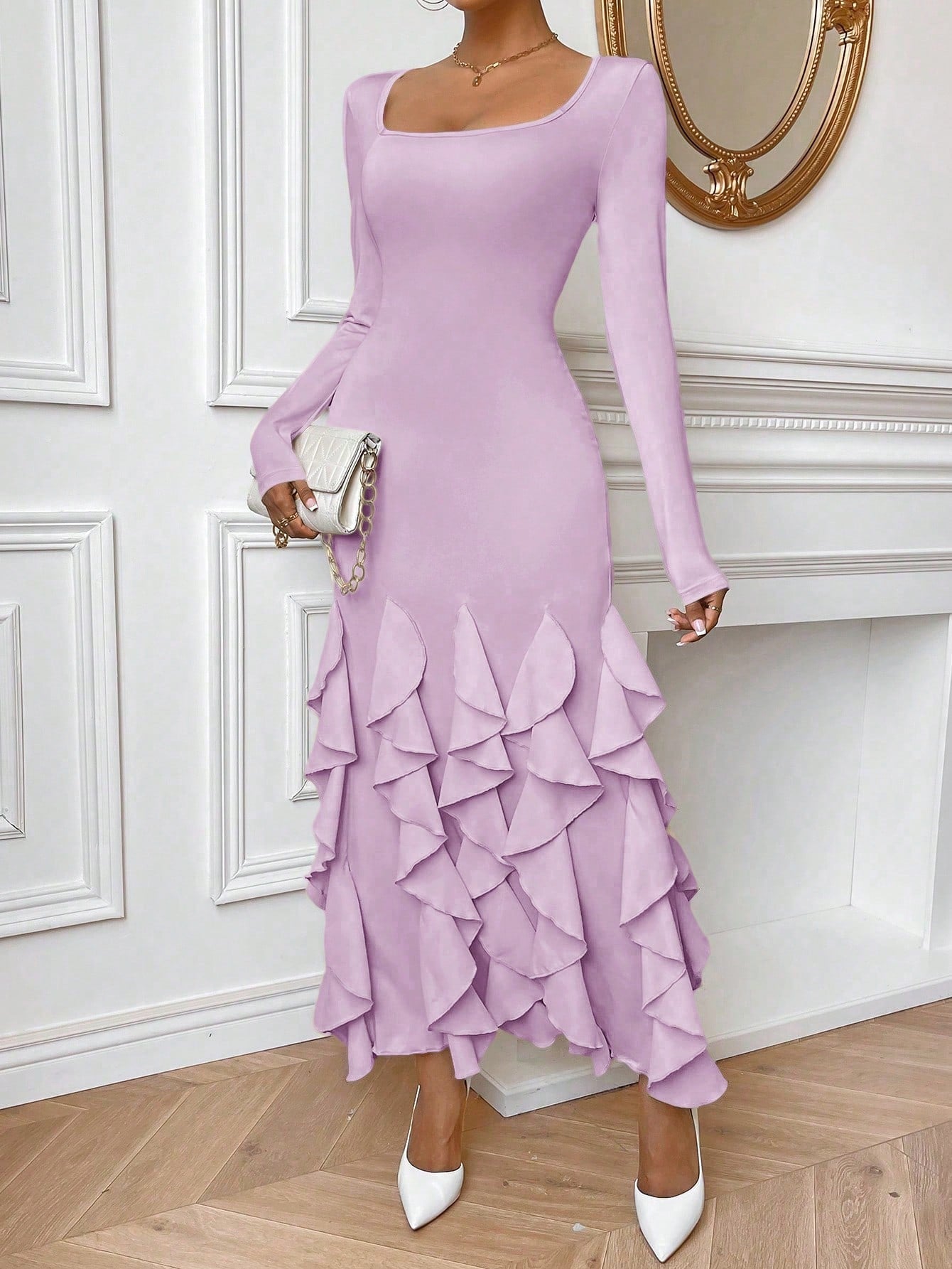 Fluttering Frill Trim Bodycon Dress: Women's Solid Color Fish Tail Style