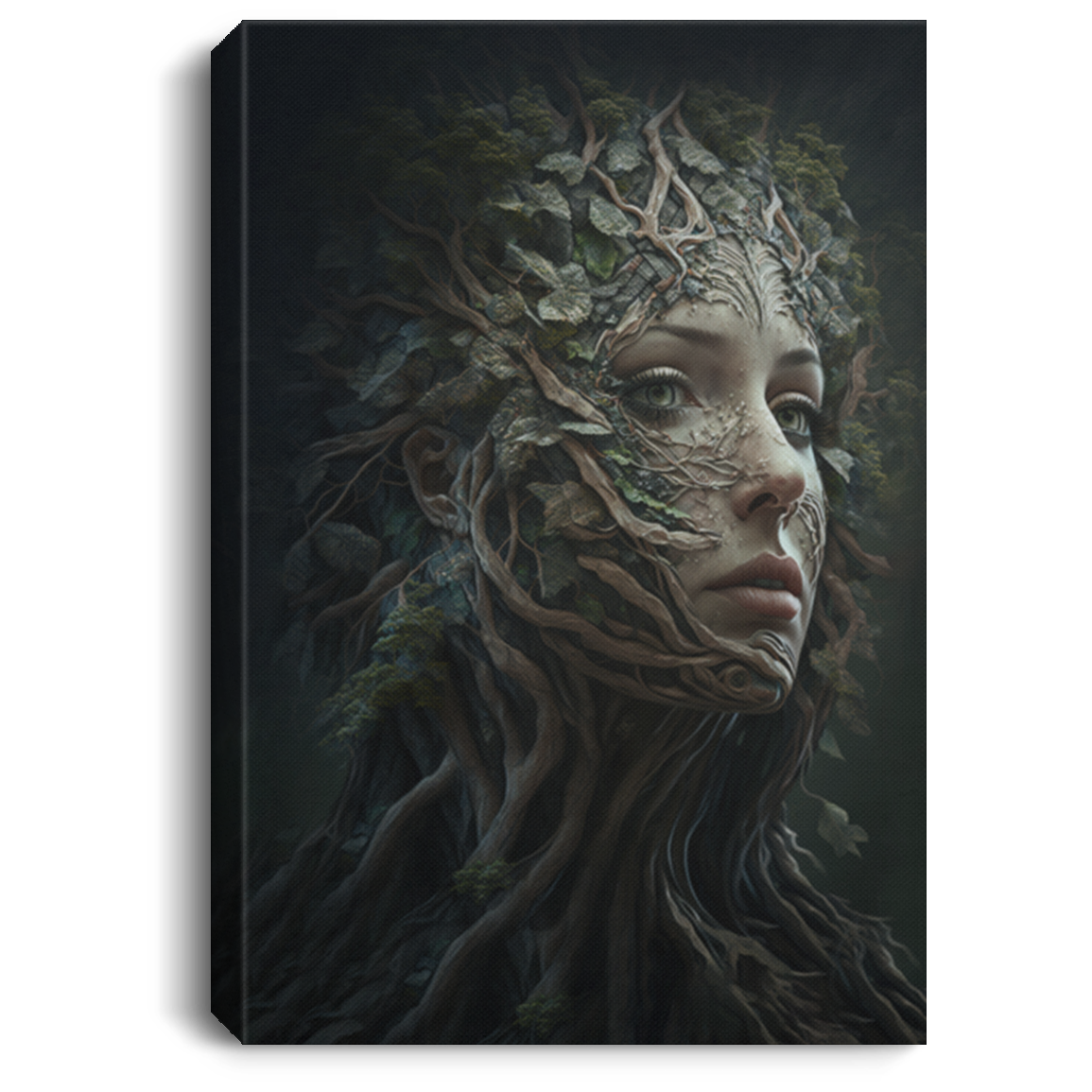 Experience tranquility with the Forest Of Talking Trees canvas painting. This comprehensive artwork features living trees conversing with a young woman in a lush, green forest. The intricate detailing of the canvas brings the fantasy to life, providing a calming atmosphere perfect for any room.
