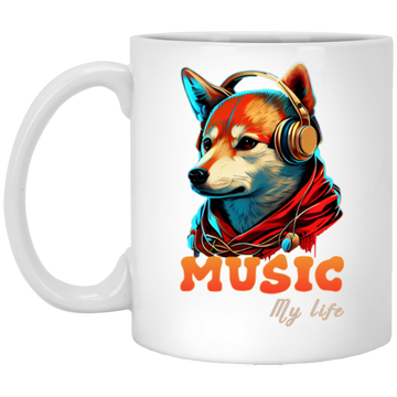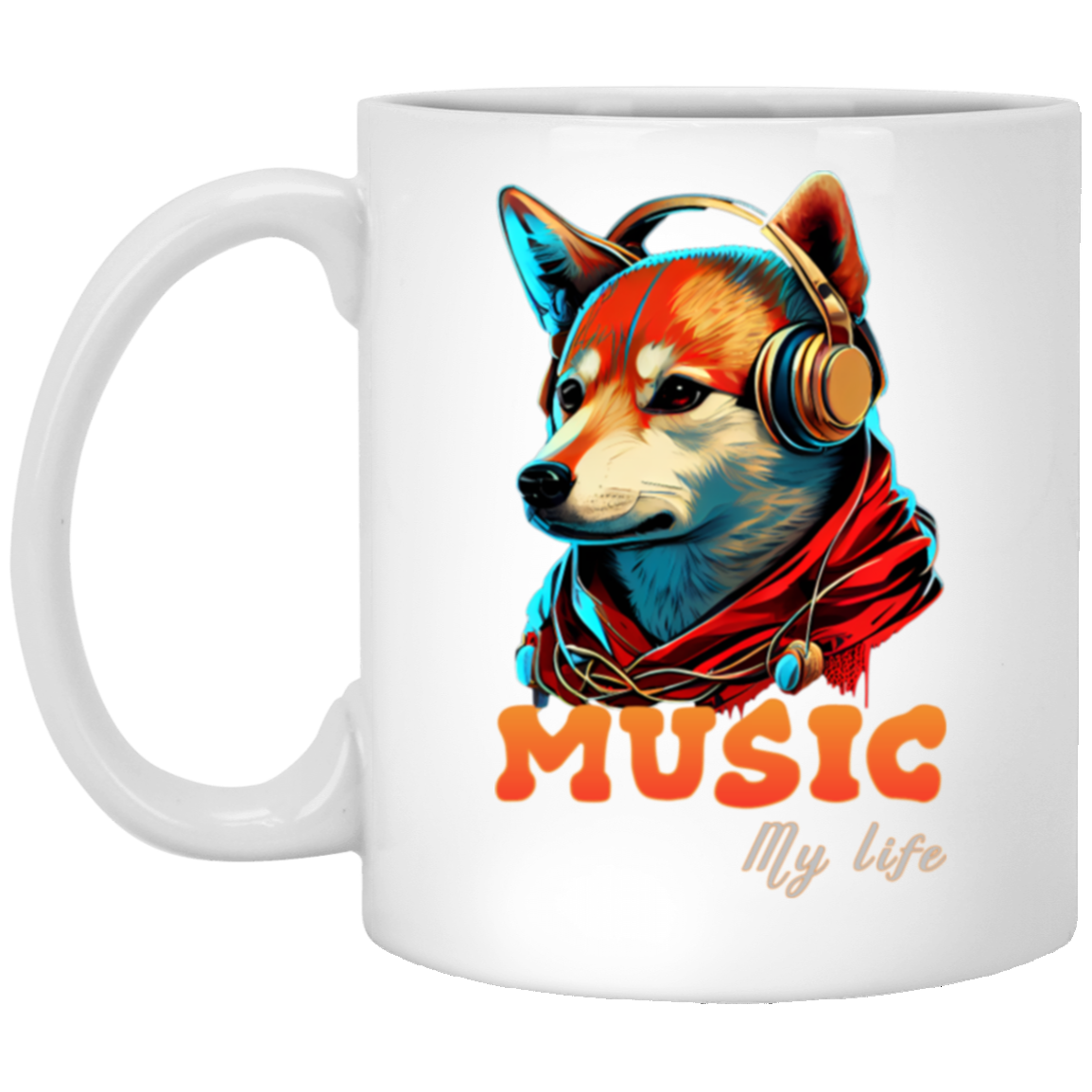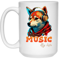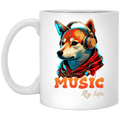 Fox Love Music, Handsome Foxe Wear A Headphone, Music Lover, Music Is My Life White Mug