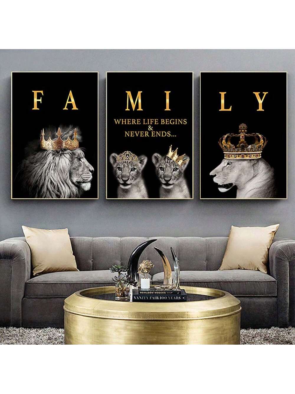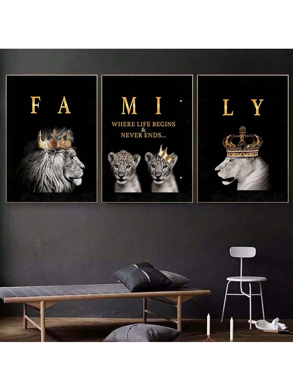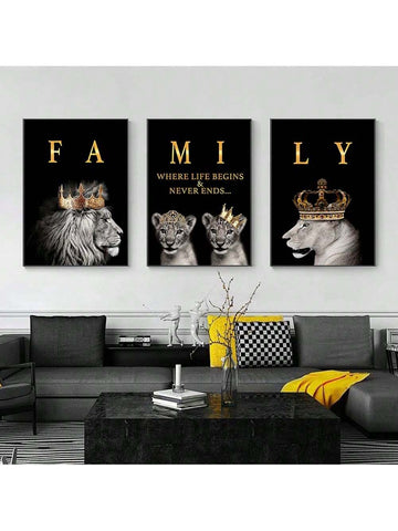 Frameless Modern Lion Family Wall Art: A Majestic Addition to Your Living Room