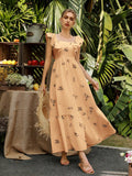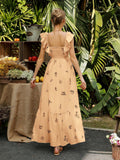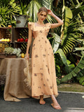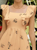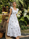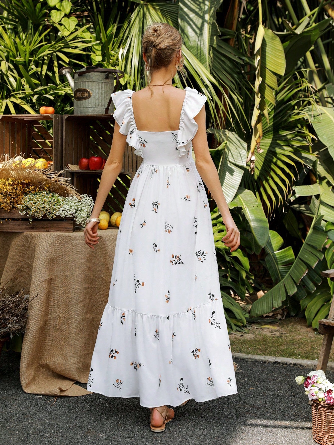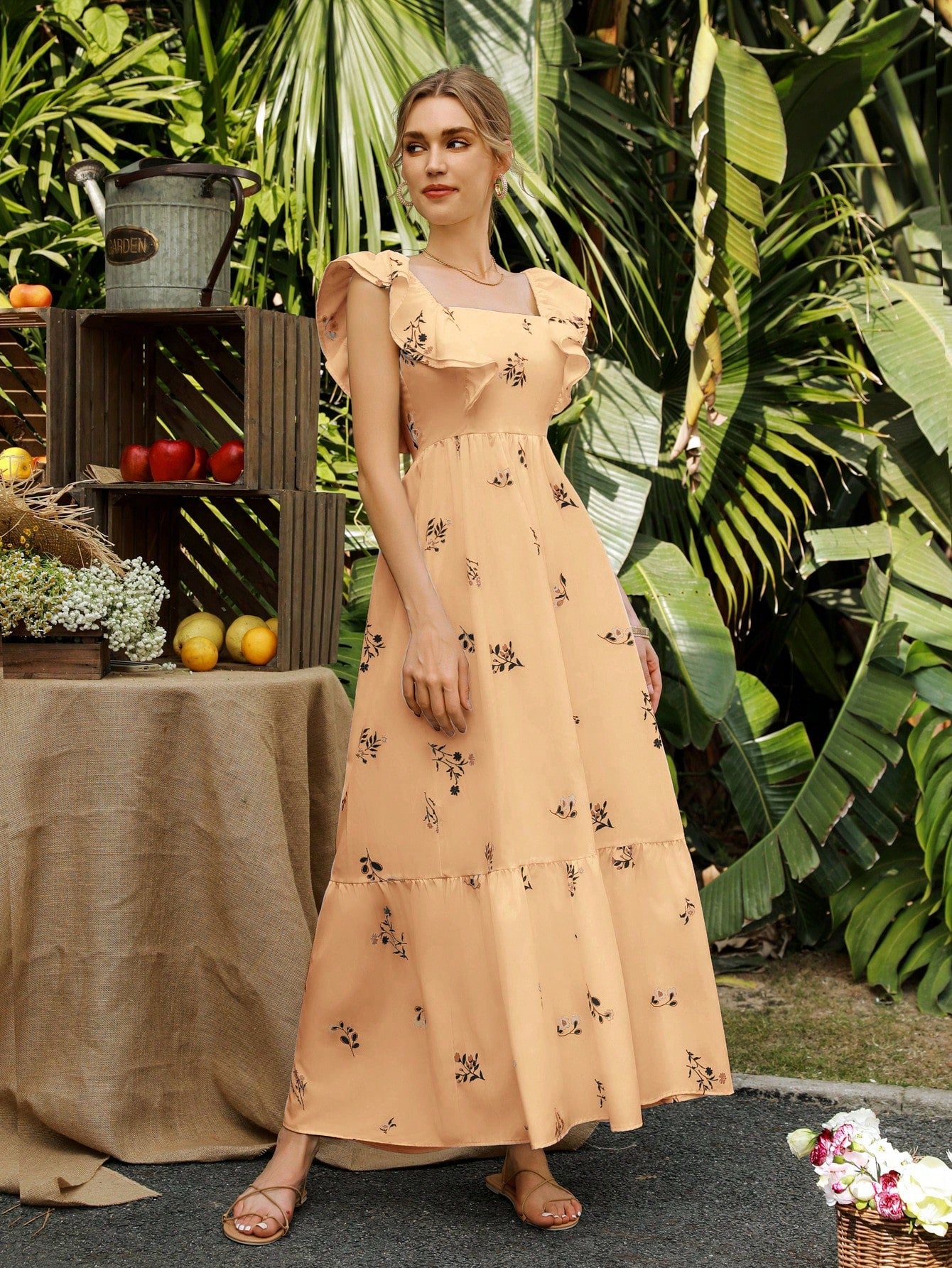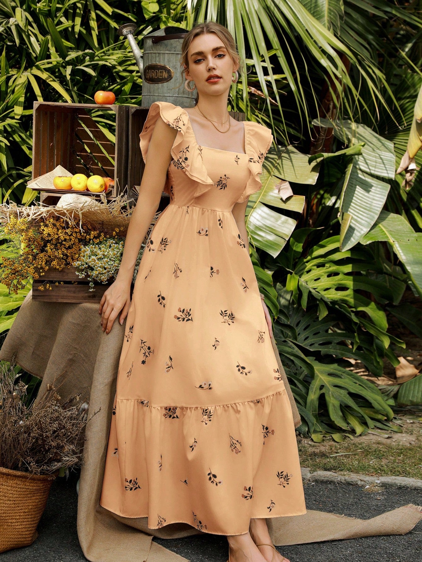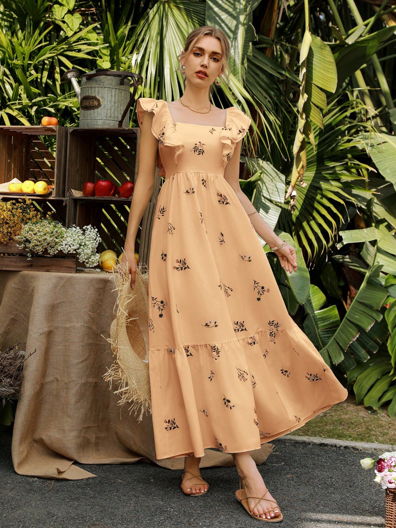 Frenchy Floral Fantasy: Women's Plant Printed Elegant Vacation Dress