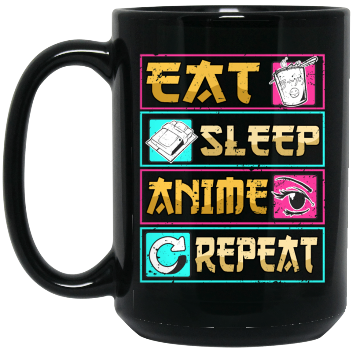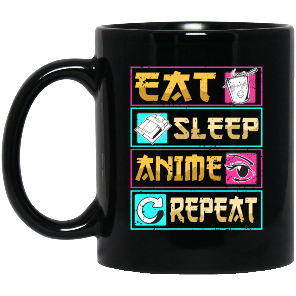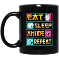 Funny Anime Eat Sleep Repeat Saying, Anime Fan Black Mug