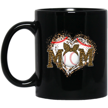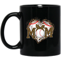 Funny Baseball Mom, Leopard Heart Mom, Ball Sport Lover Gift, Leopard Baseball Black Mug