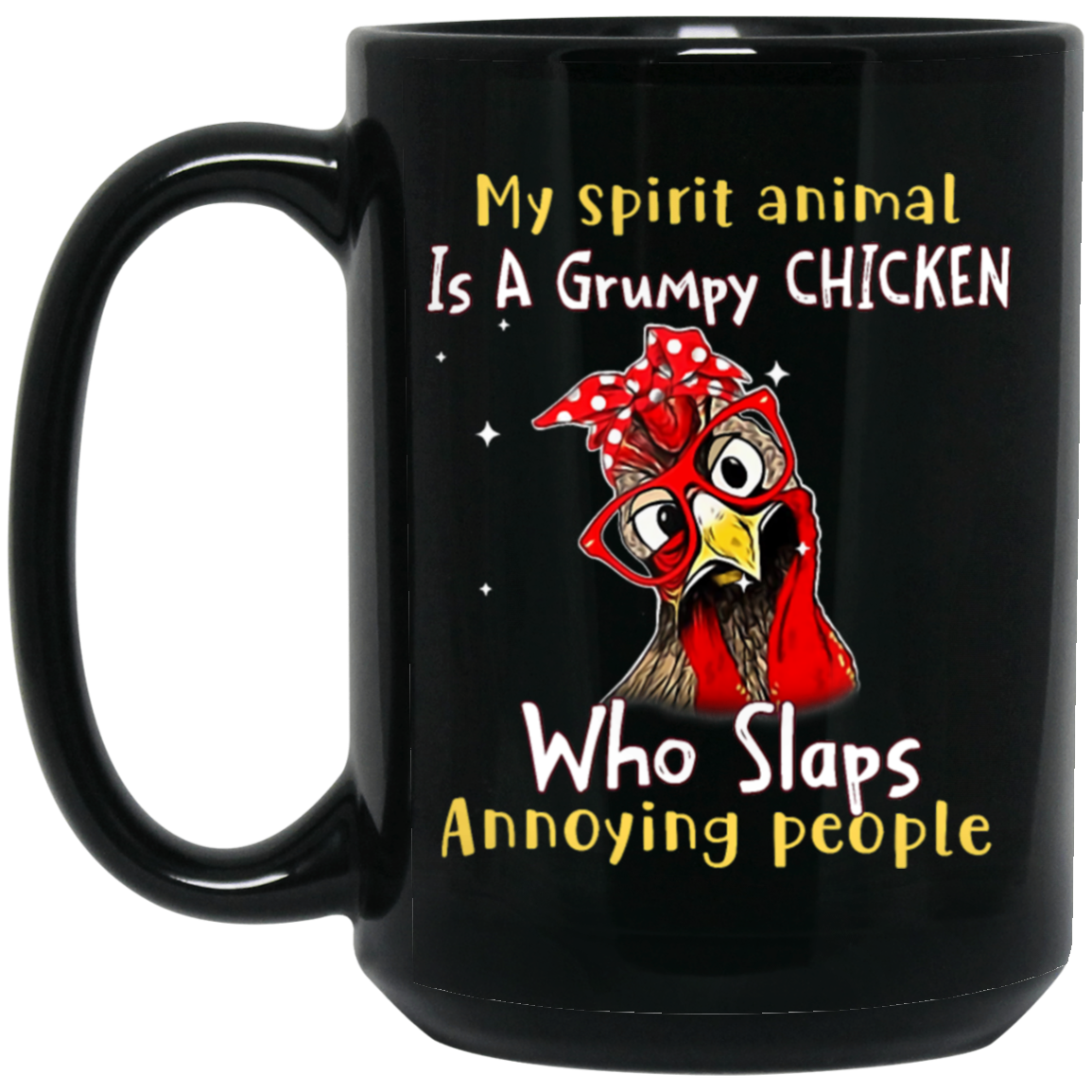 Funny Chicken, My Spirit Animal Is A Grumpy Chicken, Who Slaps Annoying People Black Mug