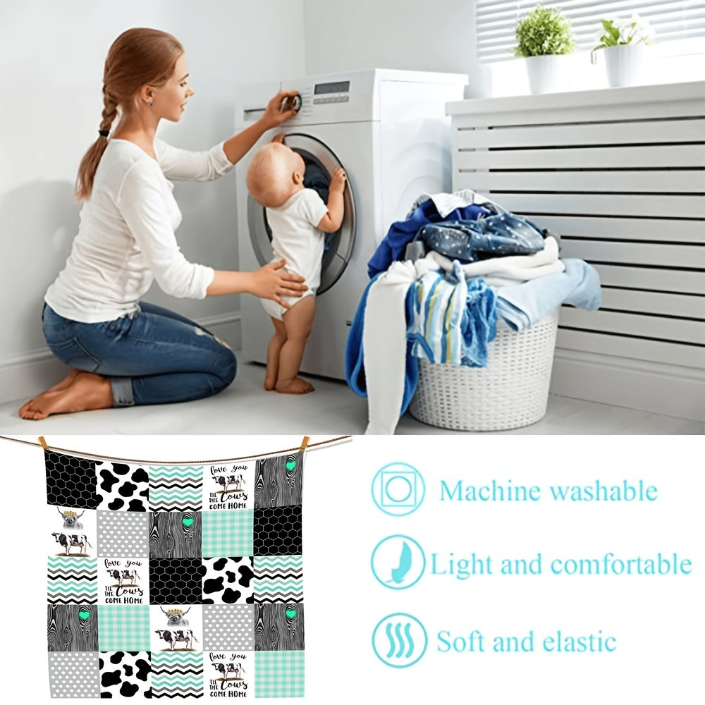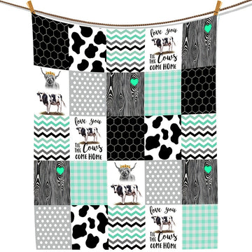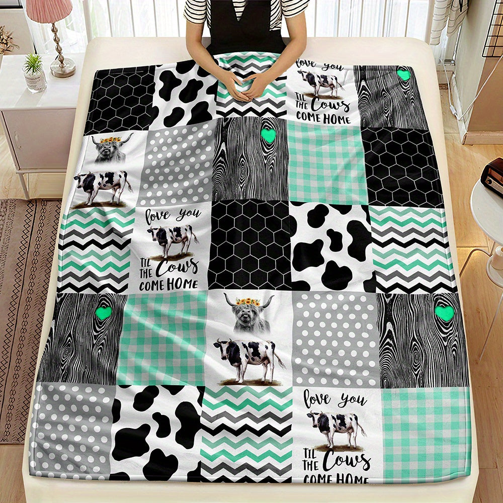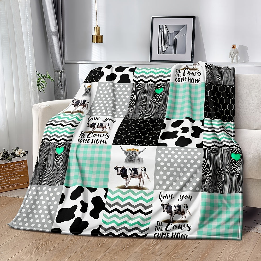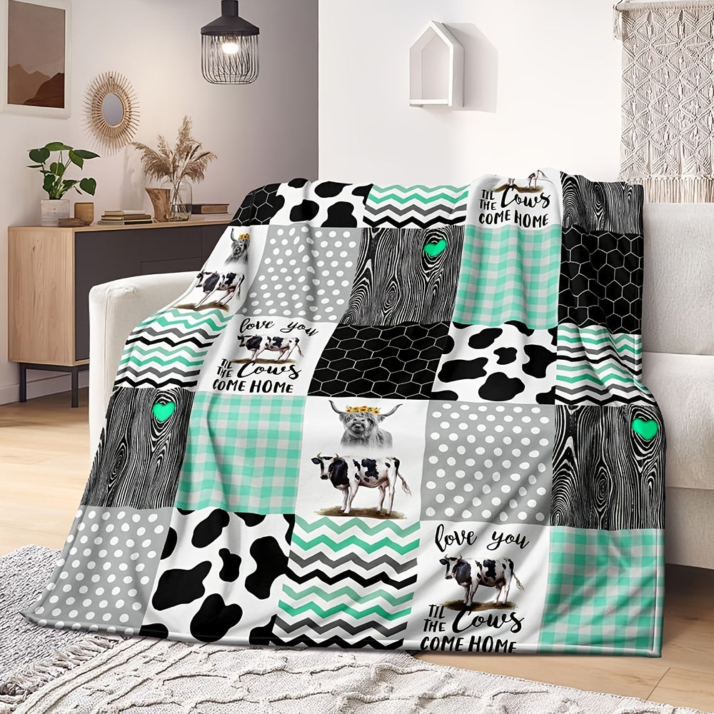 Funny Cow Blanket, Green Cow Plaid Pattern Blanket, Blanket For Cow Lover