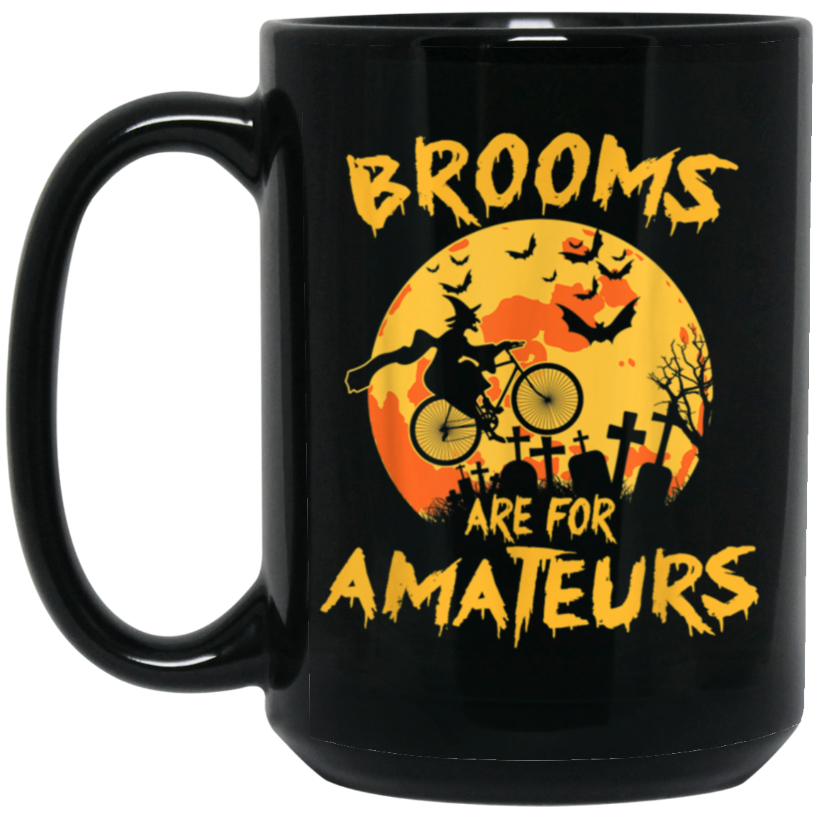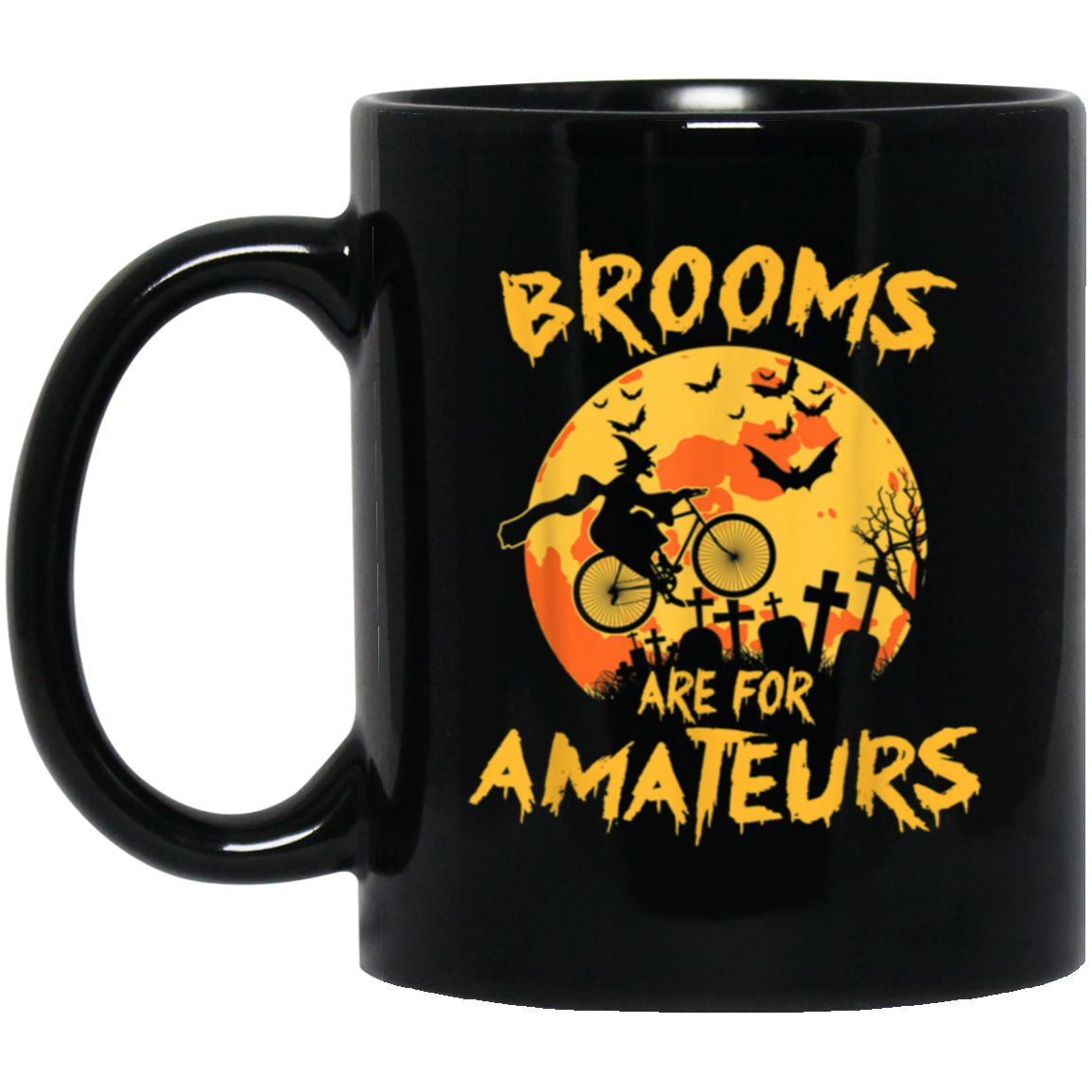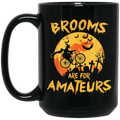 Funny Halloween, Brooms Are For Amateurs Funny Halloween Black Mug