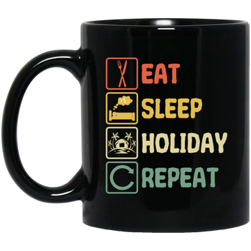 Funny Holiday Travel Eat Sleep Repeat Retro Style
