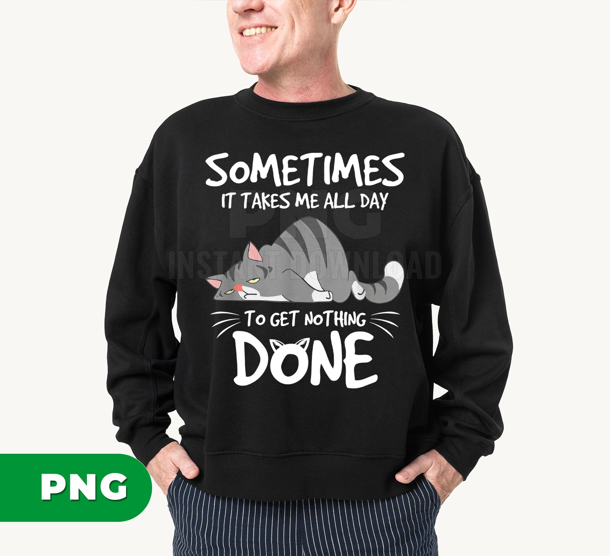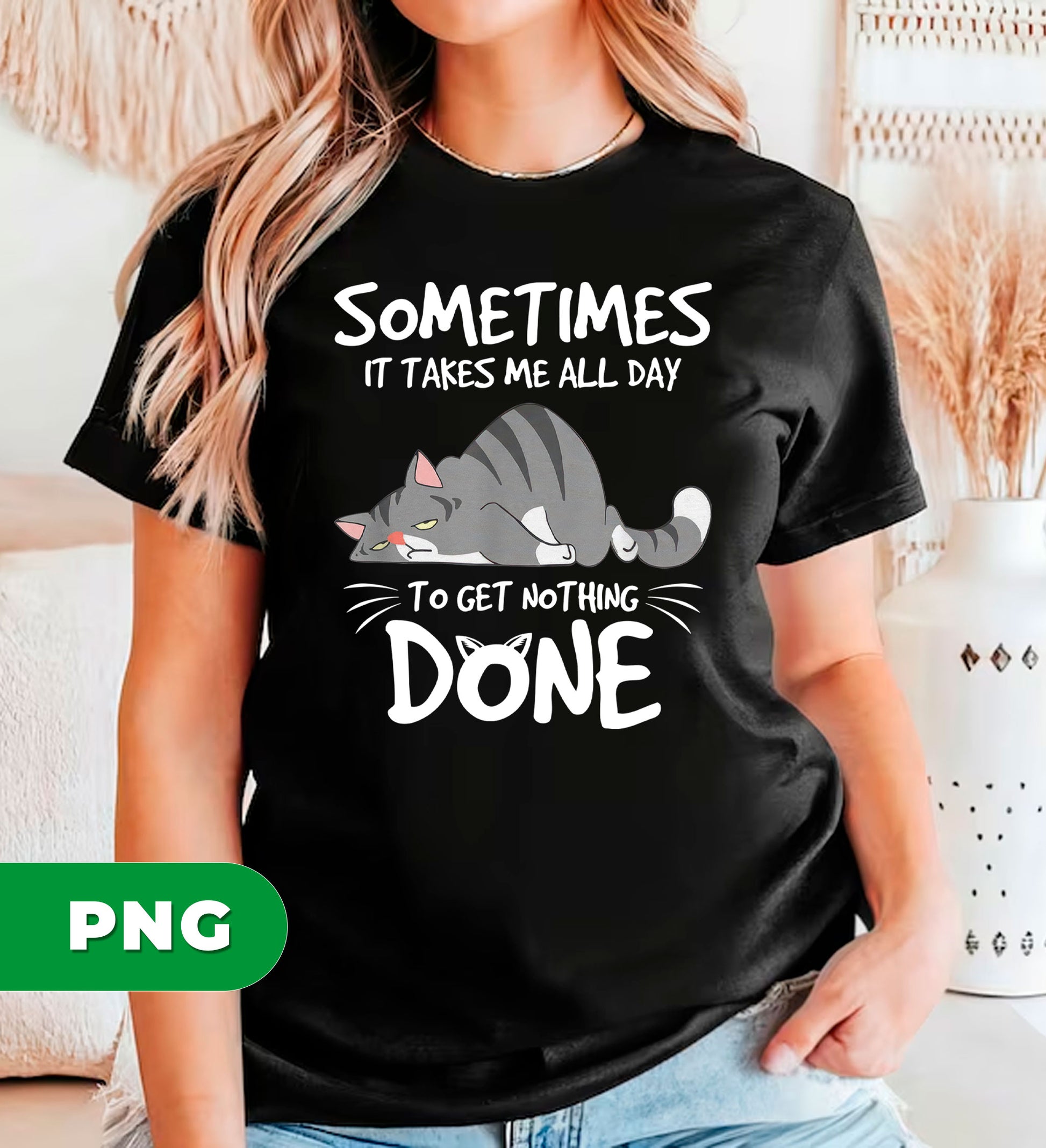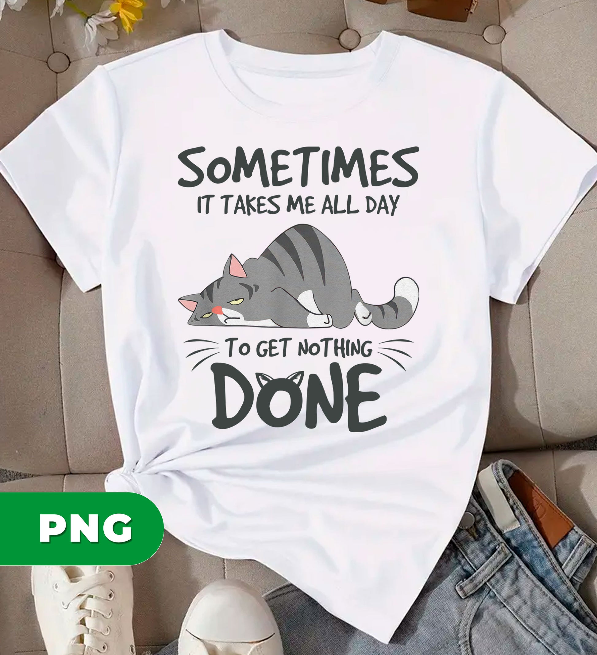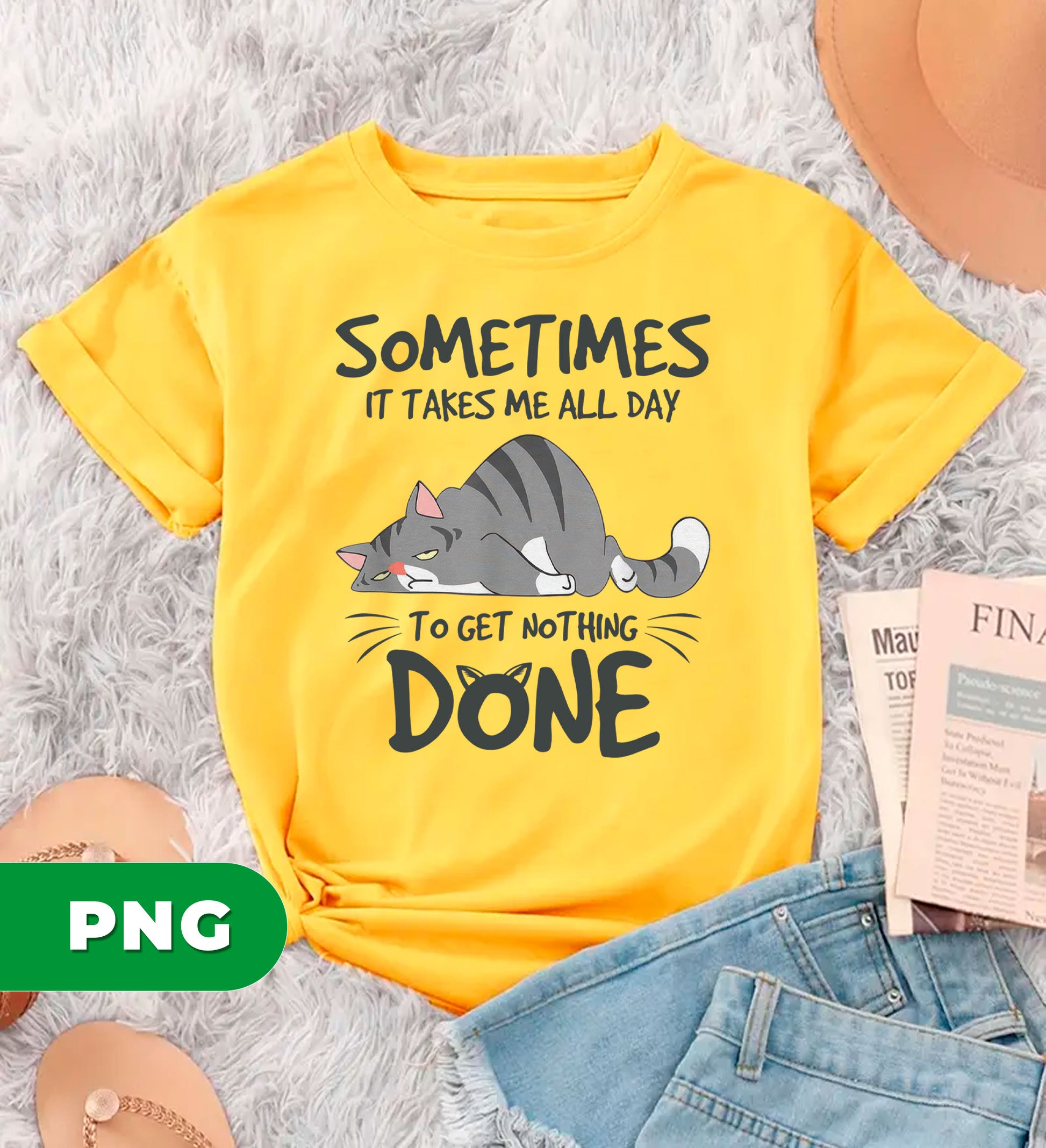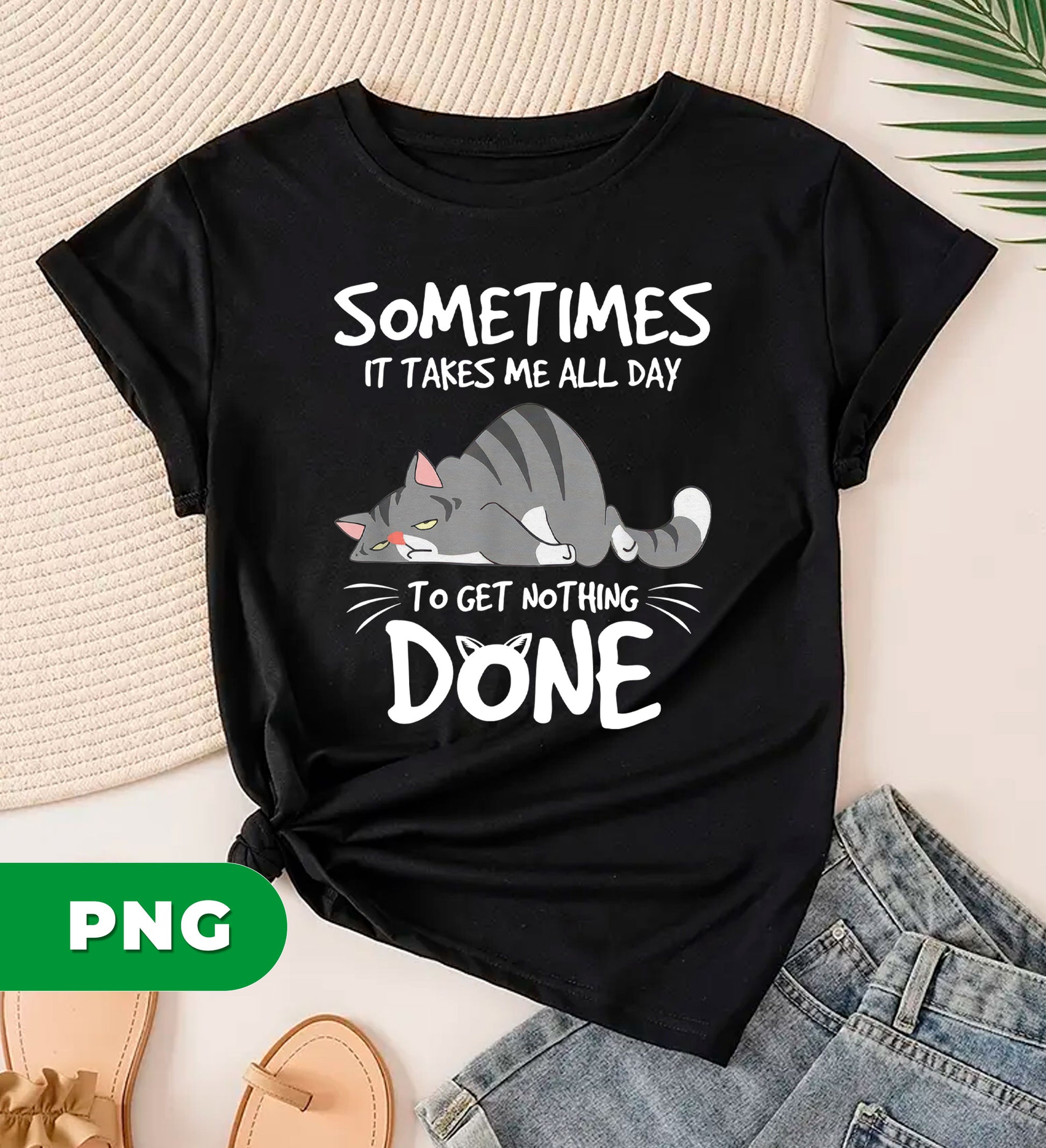 Meet the purrfect design for cat lovers with a sense of humor! This hilarious lazy cat PNG features an adorable sleeping feline paired with the relatable quote "Sometimes It Takes Me All Day." Perfect for sublimation projects, t-shirts, mugs, and more, this sarcastic clipart celebrates the art of doing absolutely nothing. Whether you're creating gifts for fellow cat enthusiasts or just need a laugh, this cute pet lover design captures that mood perfectly. High-quality PNG format ready to bring smiles to any project.