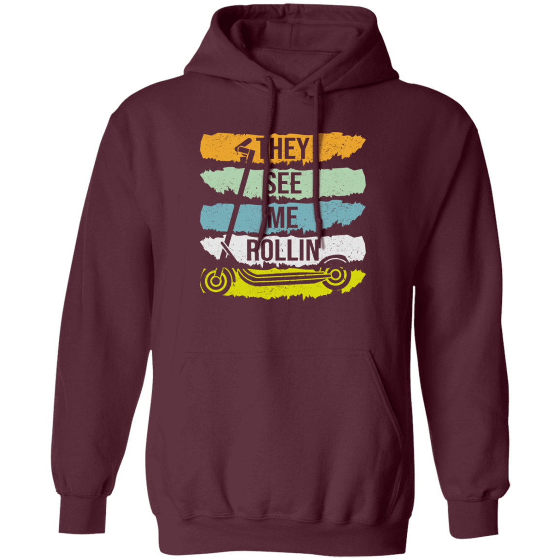 Funny Scooter Eye-catcher Scoot They See Me Rollin Gift For Friend Vintage Pullover Hoodie