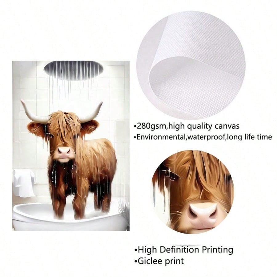 Add a touch of whimsy to your bathroom with this set of canvas posters featuring funny and lovable Scottish Highland cows. Perfect for animal lovers, these posters are sure to make you smile every time you enter your bathroom. With professional quality and a playful aesthetic, they are a unique addition to any space.
