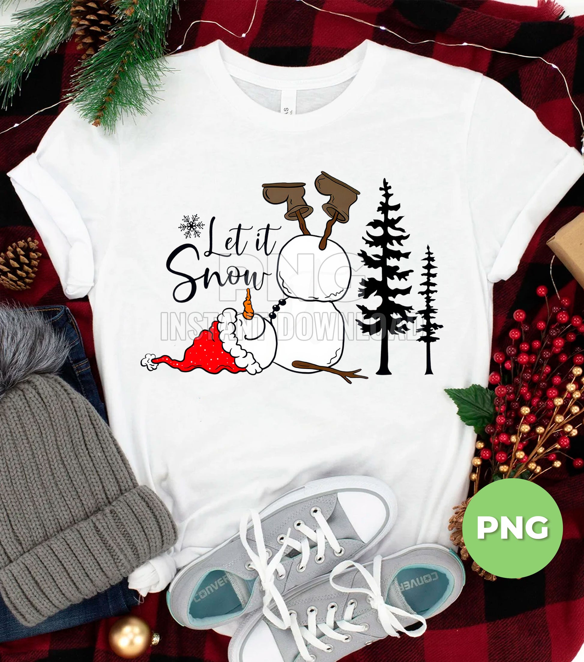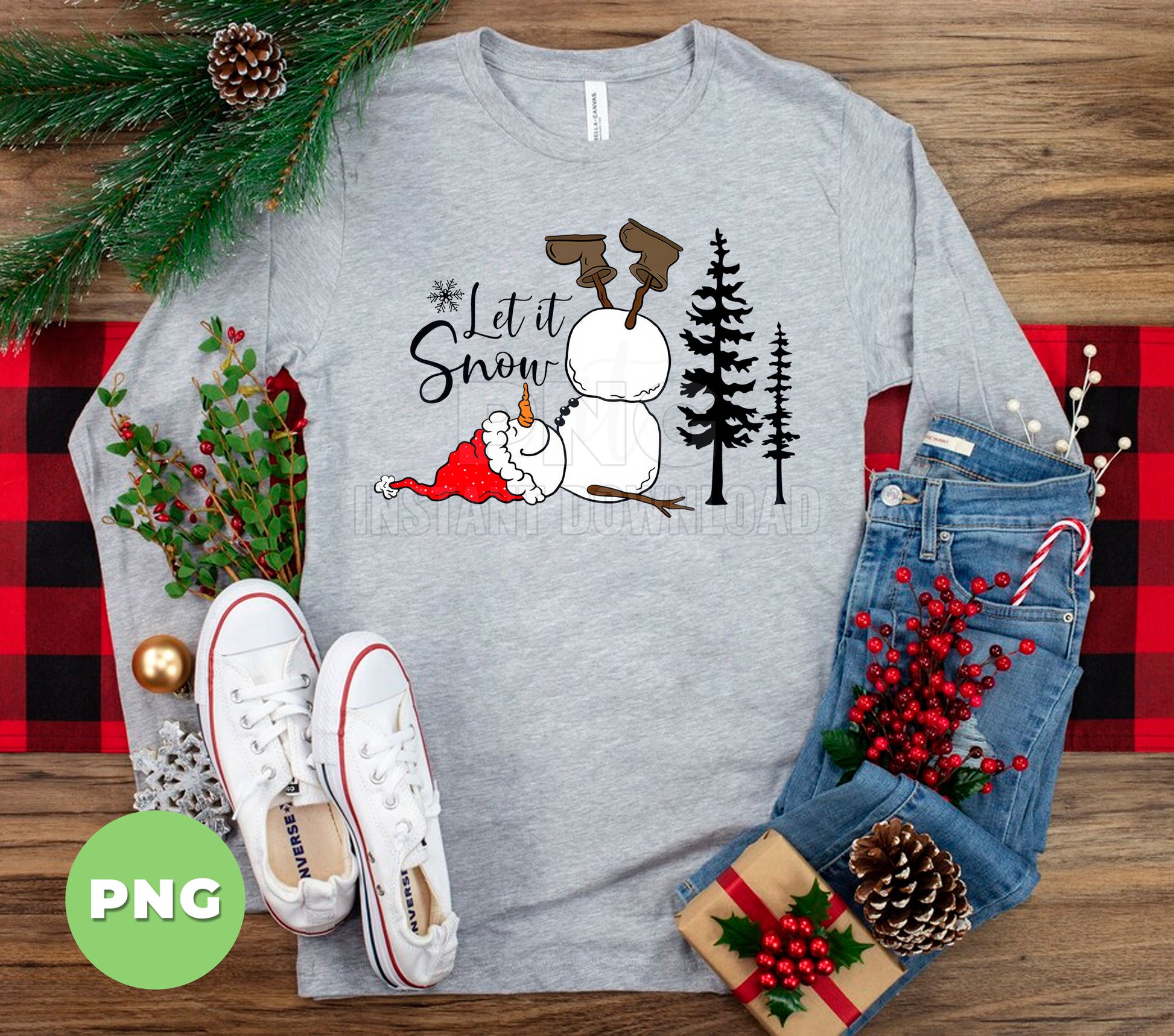 Funny Snowman PNG, Let It Snow Sublimation Design, Upside Down Christmas Snowman Clipart, Cute Winter Holiday Digital Download
