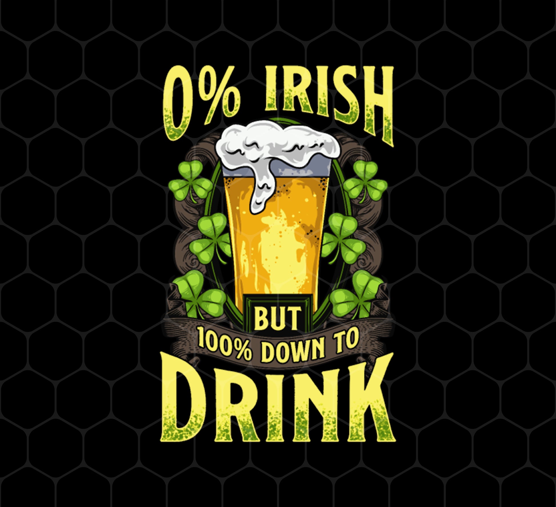 Funny St Patricks Day 0 Irish But 100 Down To Drink, Png Printable, Digital File