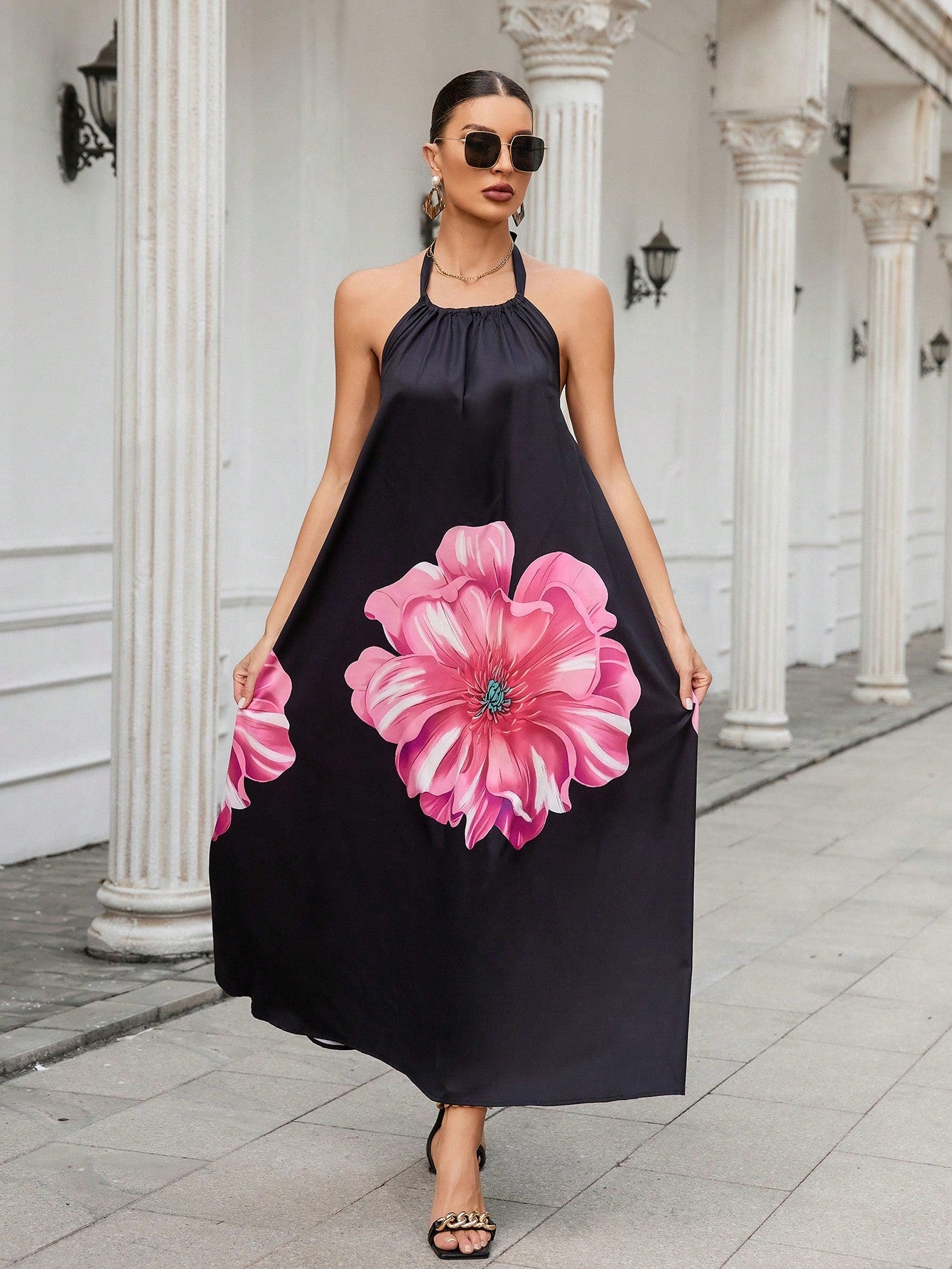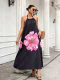 Garden Chic: Women's Floral Print Halter Neck Loose Sleeveless Dress