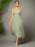 Garden Party Perfection: Tie Shoulder Floral Print Mesh Dress
