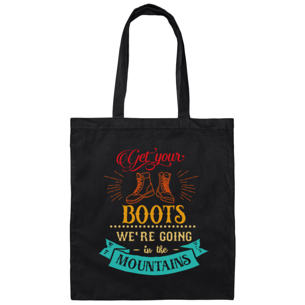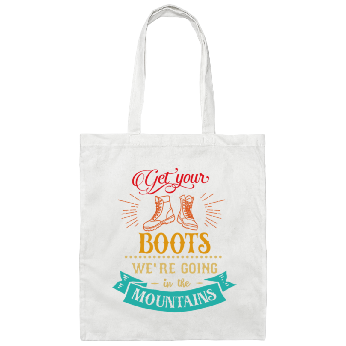 Get Your Boots, We Are Going In The Mountains, Camp Retro Boots Canvas Tote Bag