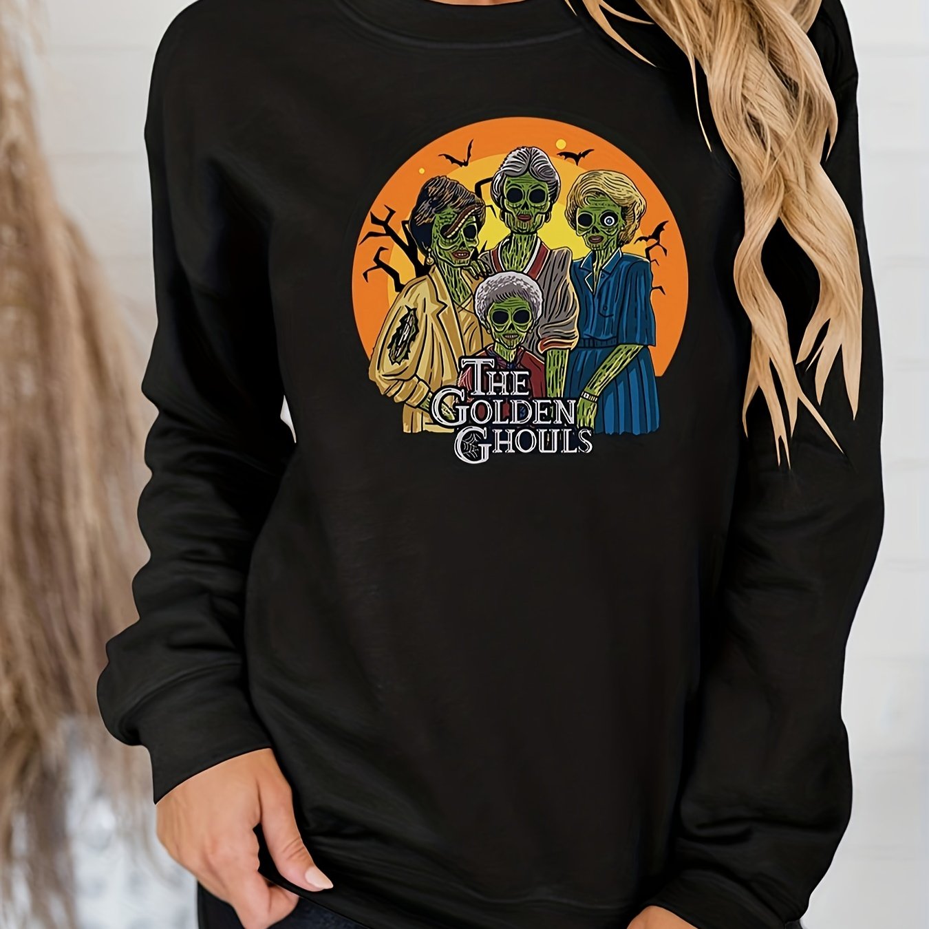 Ghoulish Delight: Halloween Print Pullover Sweatshirt for Women - A Cozy and Spooky Addition to Your Fall/Winter Wardrobe!