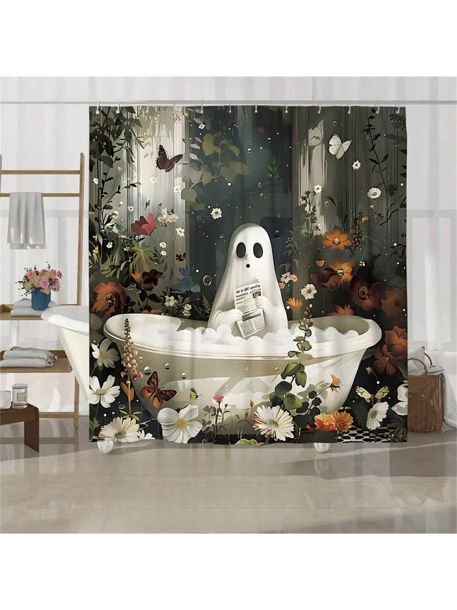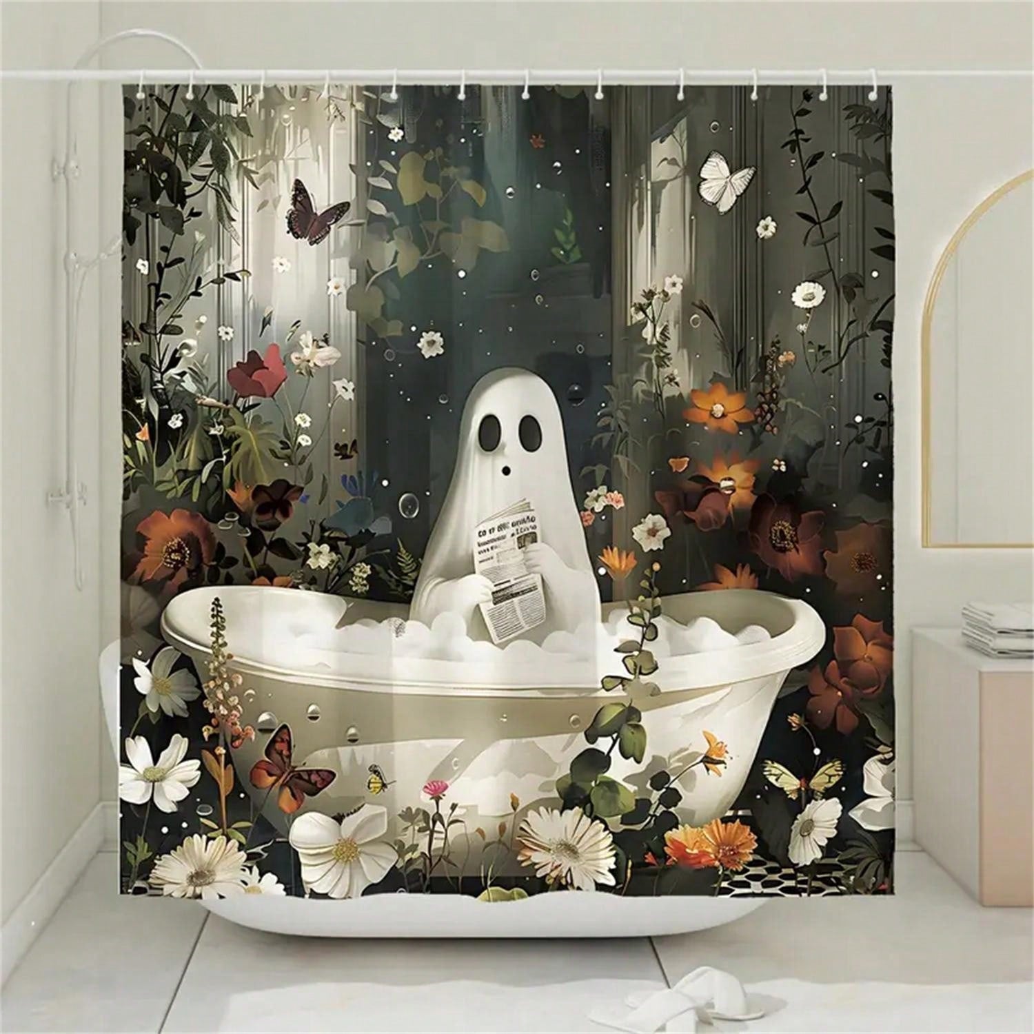 Ghoulishly Cute Halloween Ghost Pumpkin Shower Curtain Set for Spooky Bathroom Decor