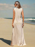 Glamorous Getaway: Women's Summer V-Neck Casual Dress with Thigh-High Slits