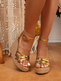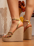 Glamorous Golden Wedge Heel Sandals: Perfect for Parties and Special Events