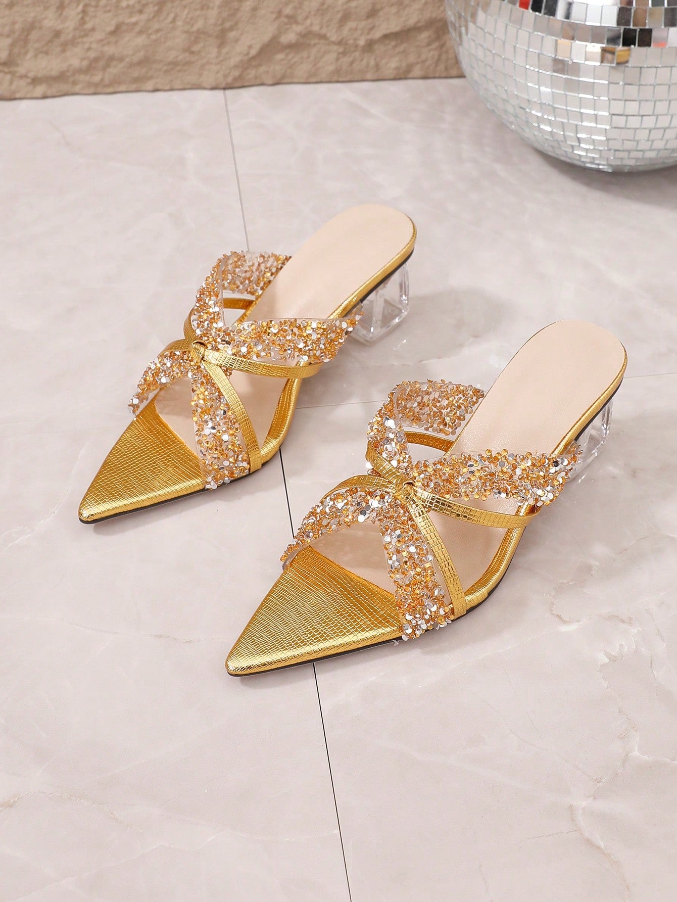 Glamorous Rhinestone Sandals: Elevate your Style with Pointed Toe High Heels