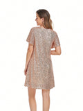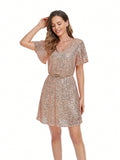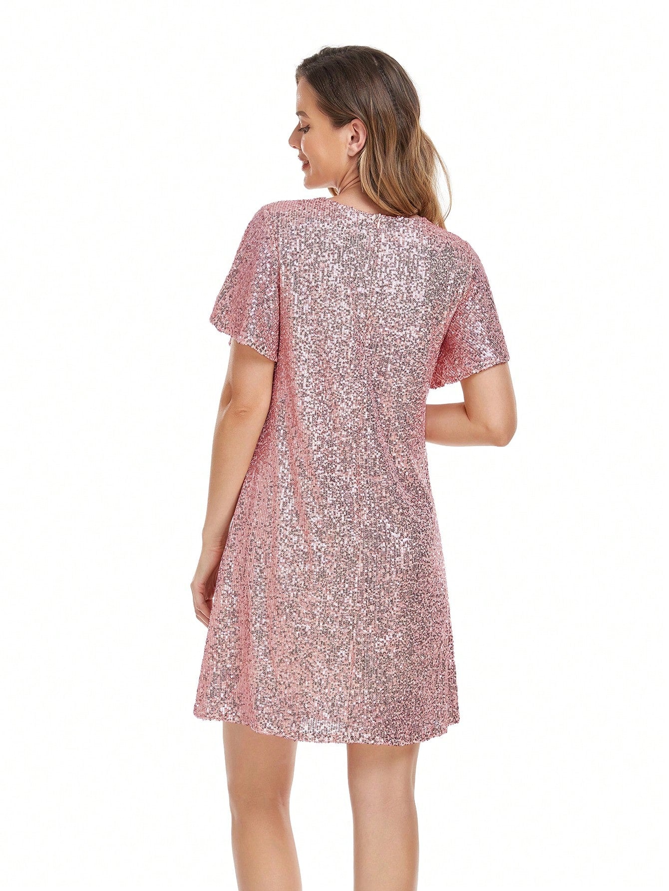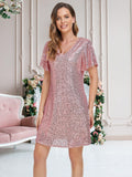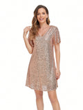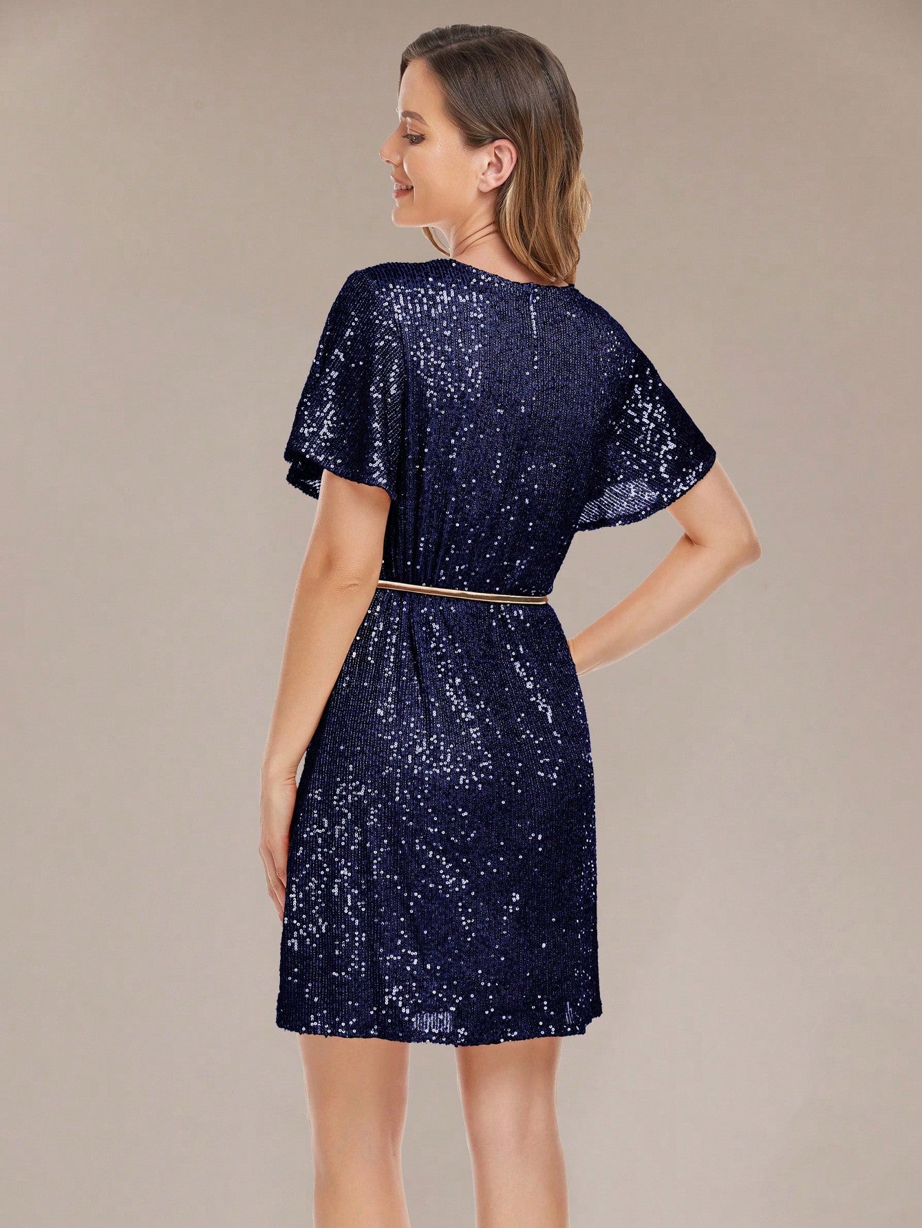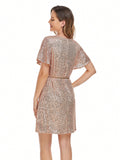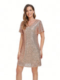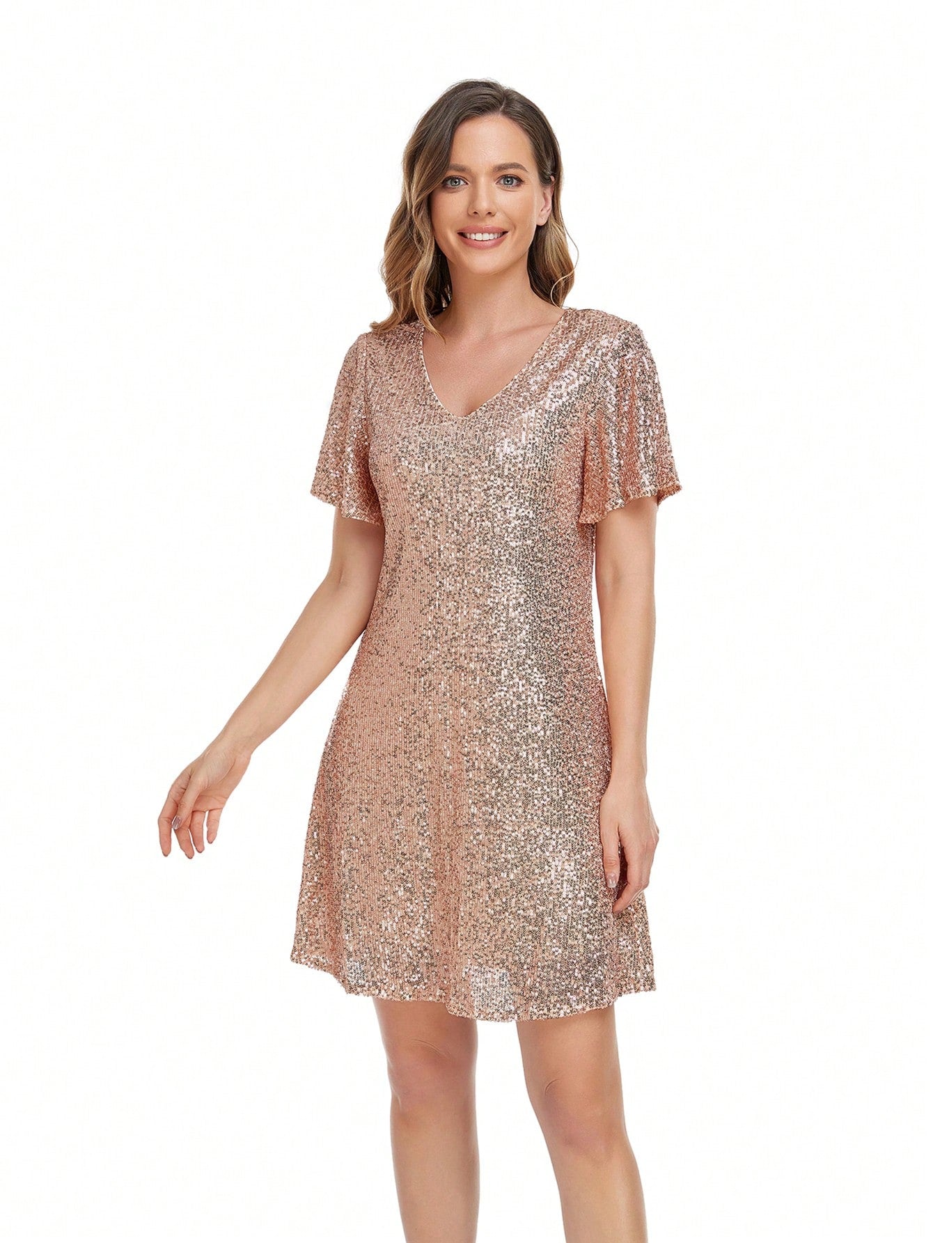 Glamorous Sequin V-Neck Dress with Flounce Sleeves