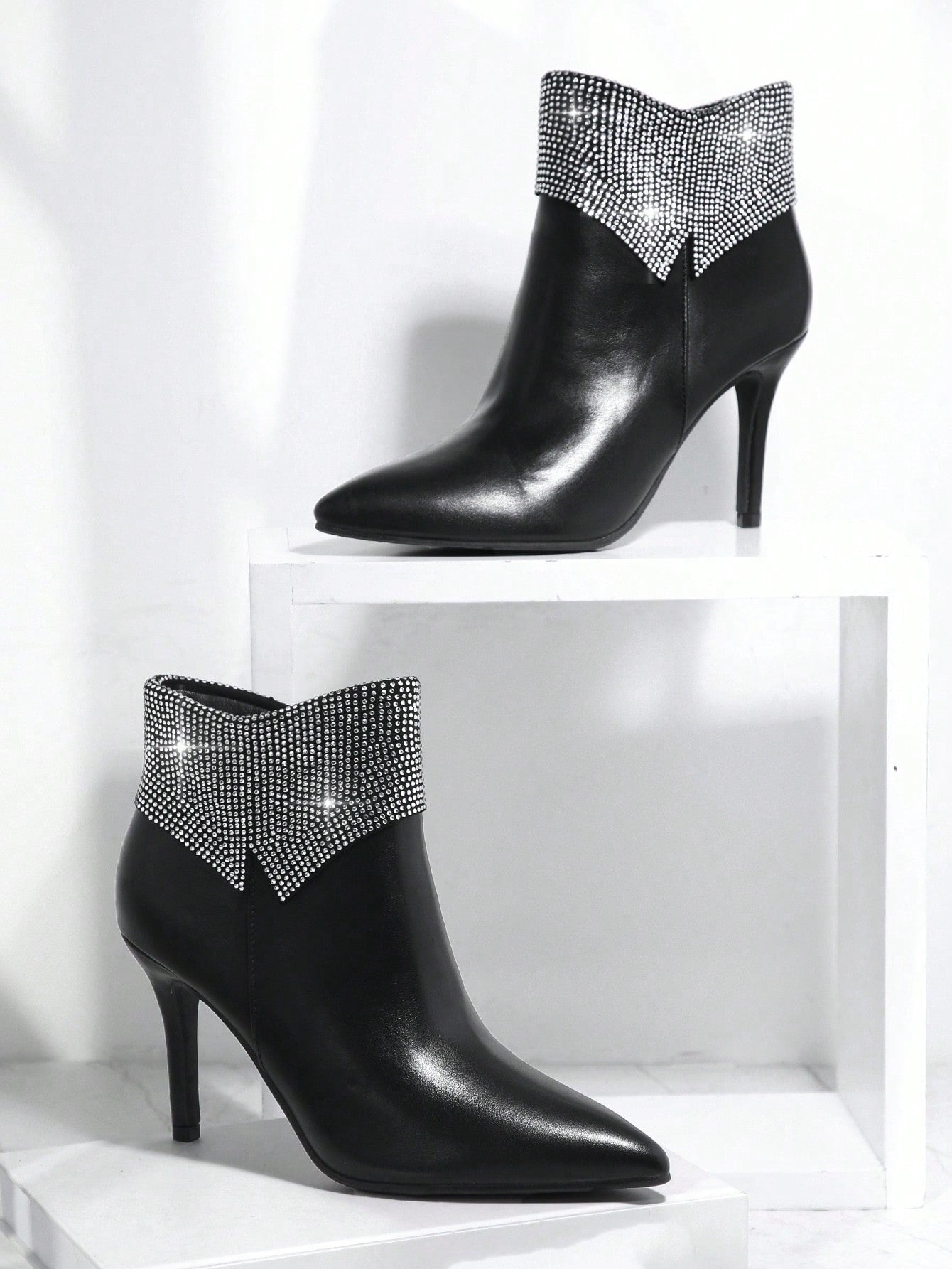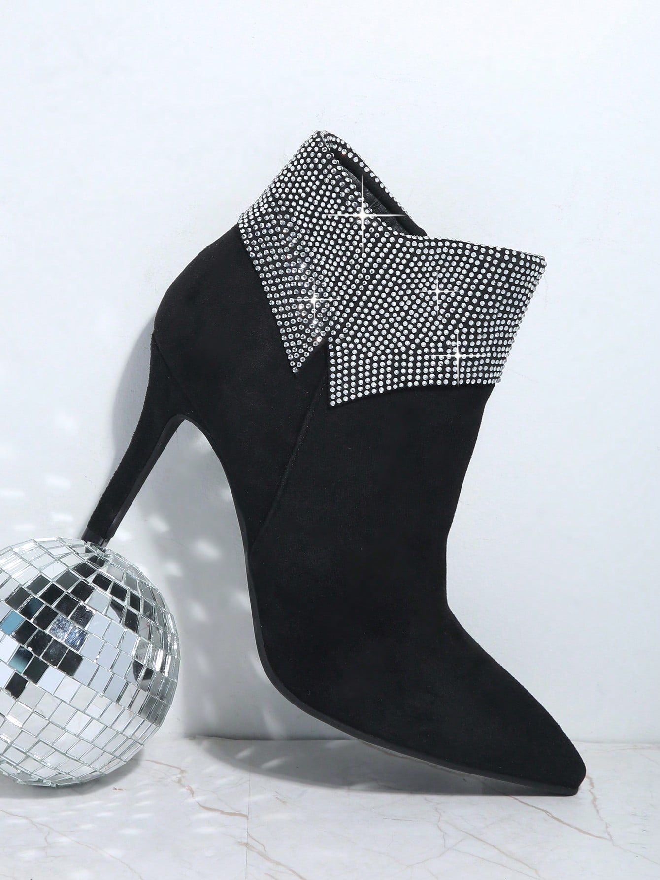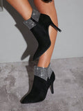 Glamorous Sparkle Stiletto Boots: Rhinestone Decor Side Zipper Chic