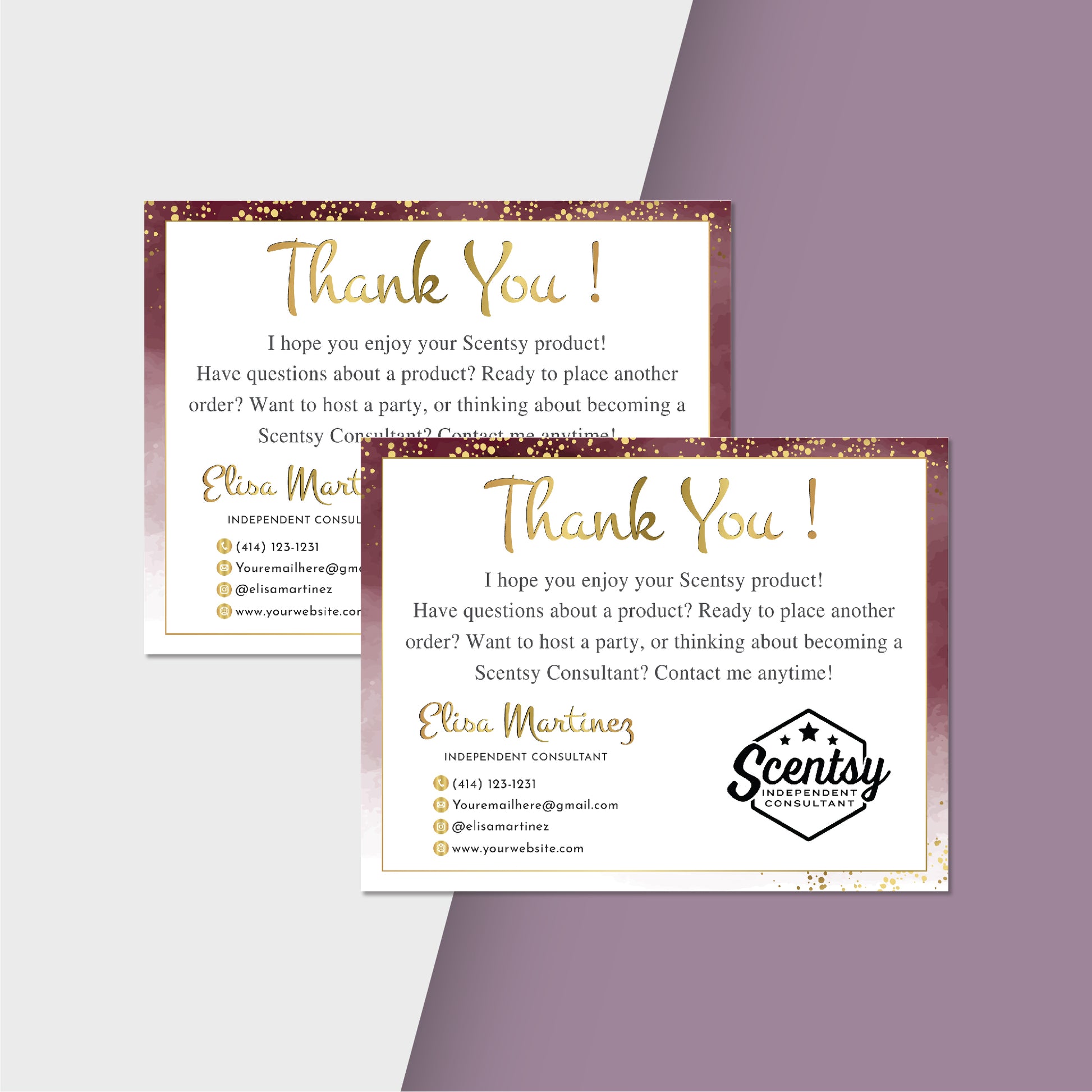 Glitter Gold Scentsy Thank You Card, Personalized Scentsy Business Cards SS26