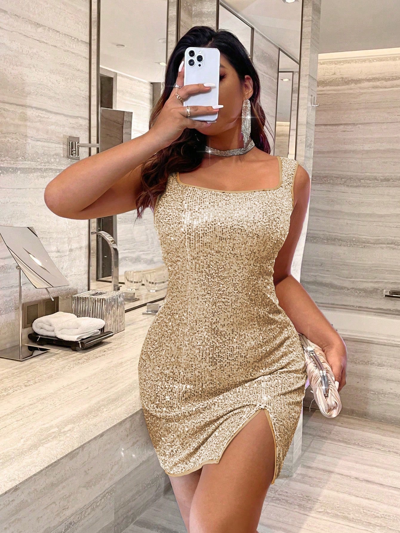 This Glitz and Glamour Sequin Bodycon Dress is expertly crafted with sequins for a dazzling look. With its bodycon fit, it accentuates your curves and flatters your figure. Perfect for any glamorous occasion, this dress will make you the star of the show.