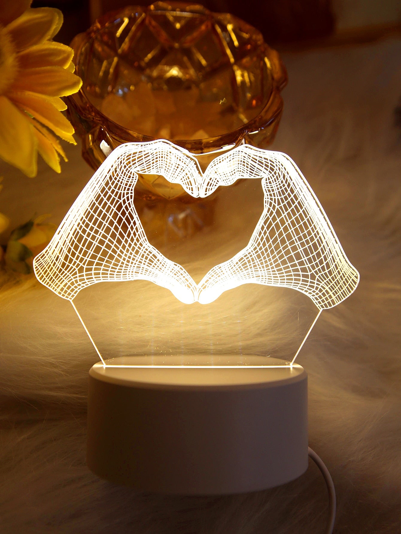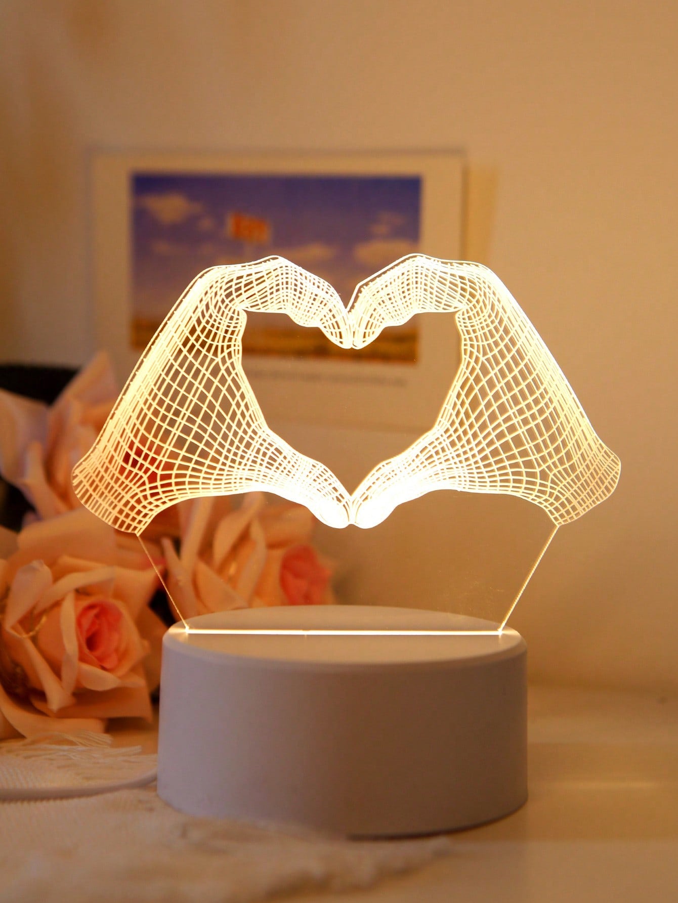 Elevate your bedroom decor with Glowing Gestures, the 3D creative decorative light. With its unique design, this light adds a touch of sophistication to any room. Its soft glow creates a cozy and inviting atmosphere, perfect for relaxation or adding a touch of ambiance to your space. Experience elegant and artistic lighting with Glowing Gestures.