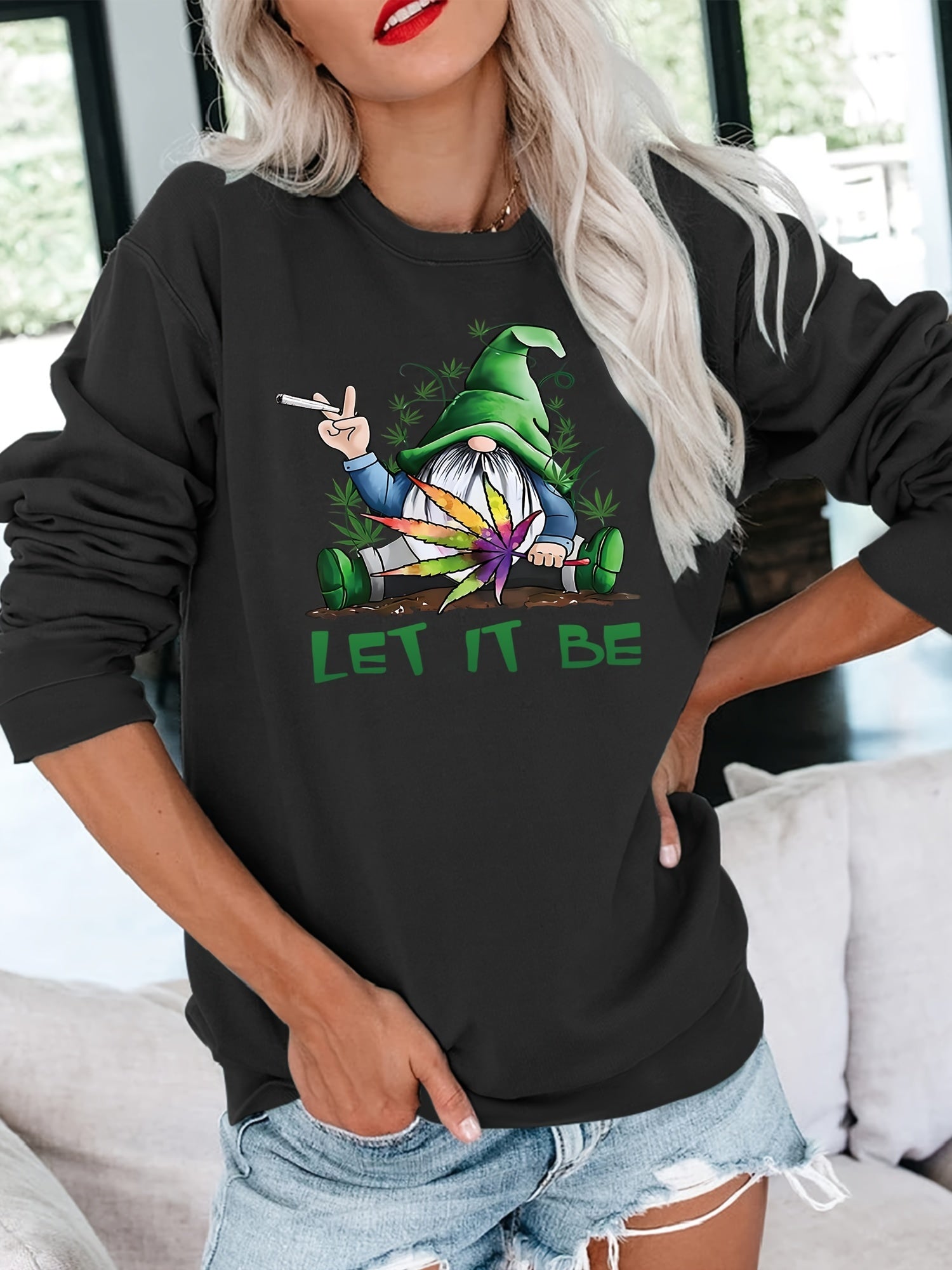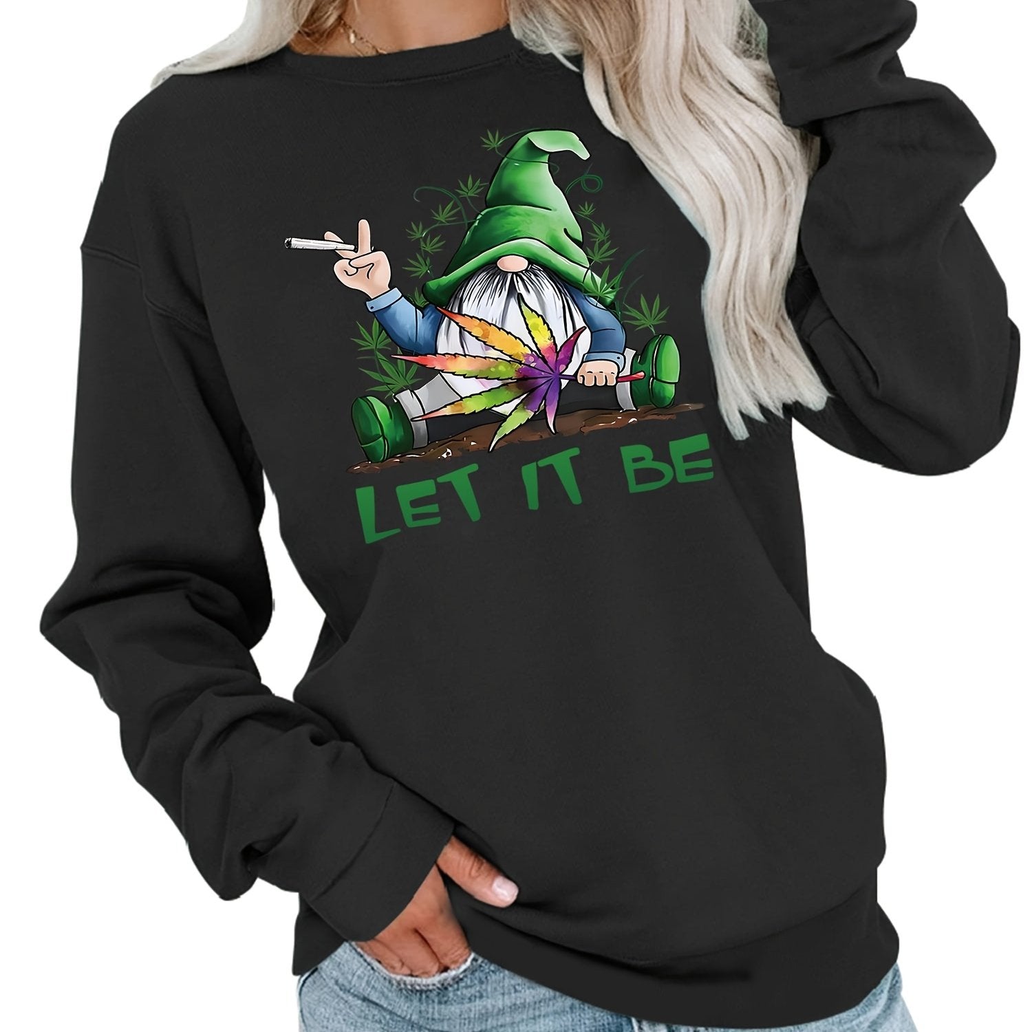 Gnome & Letter Print Pullover Sweatshirt, Casual Long Sleeve Crew Neck Sweatshirt For Fall & Winter, Women's Clothing