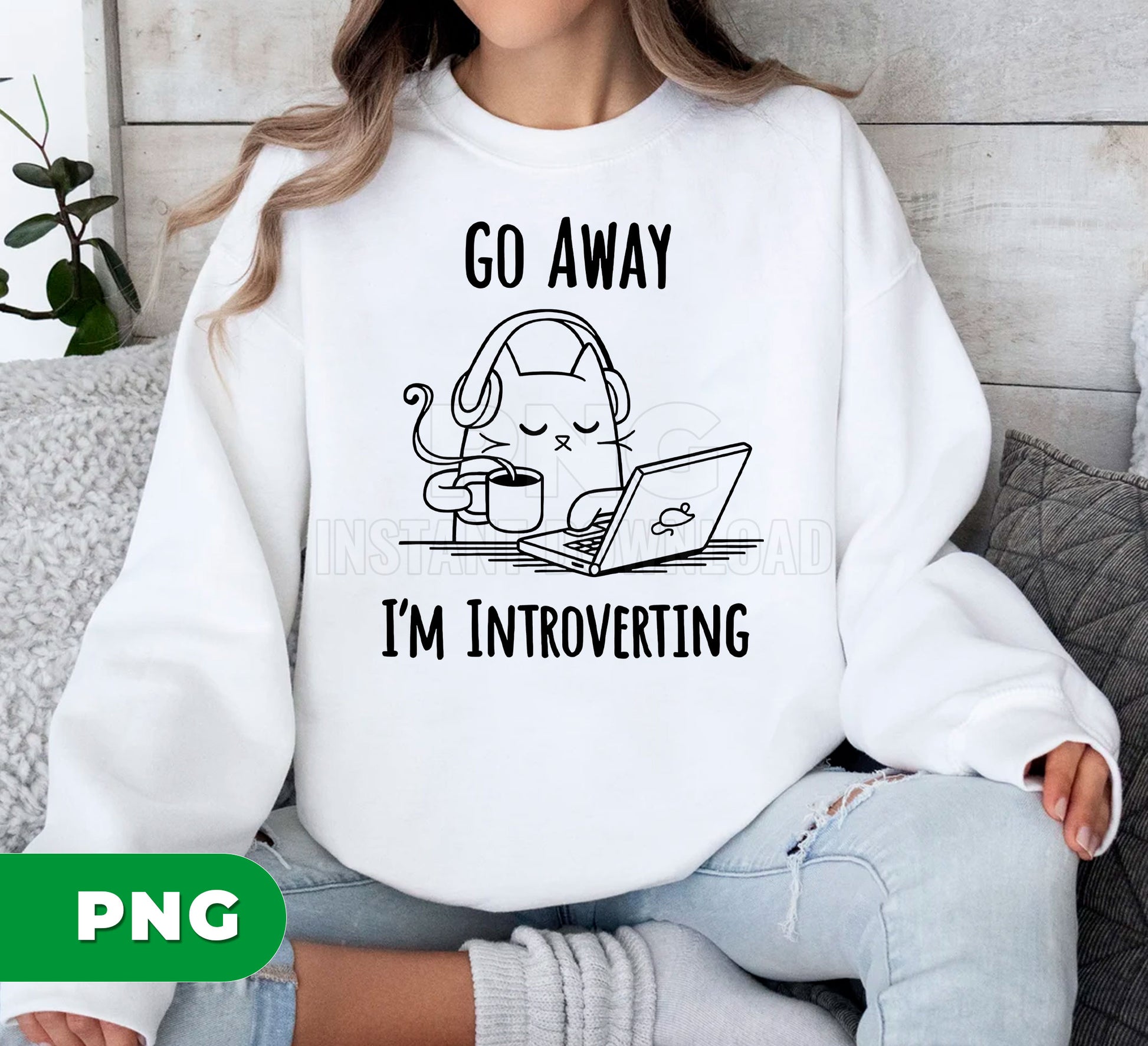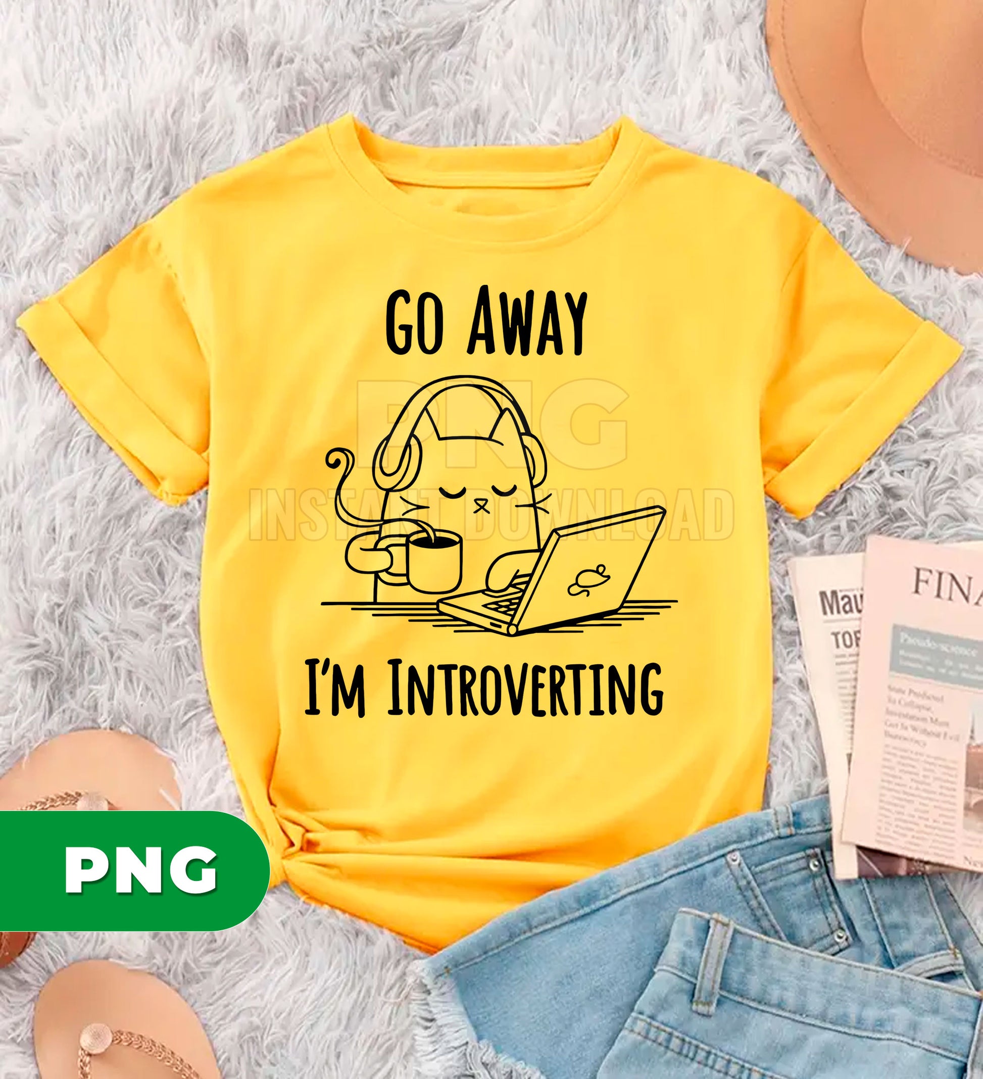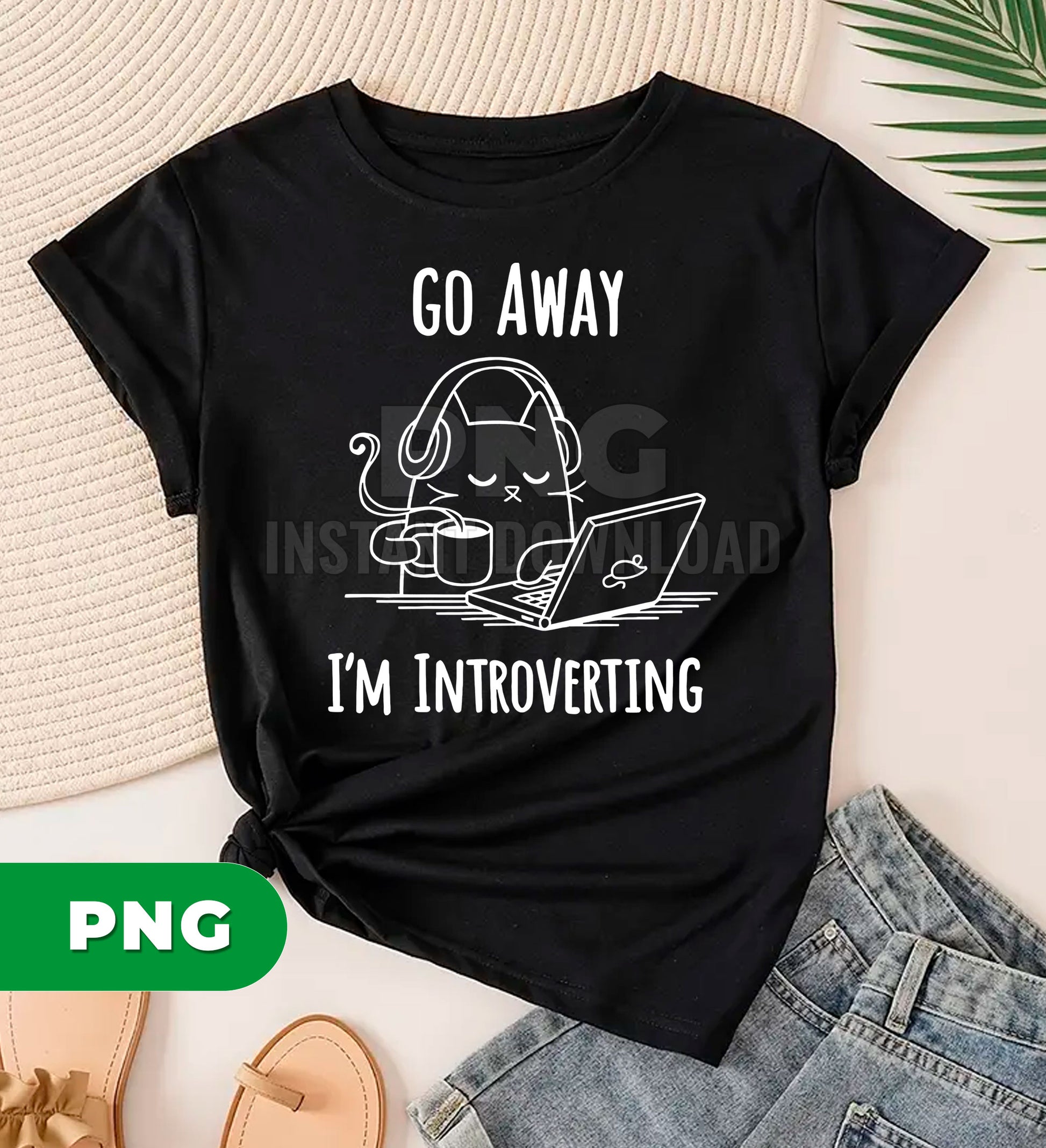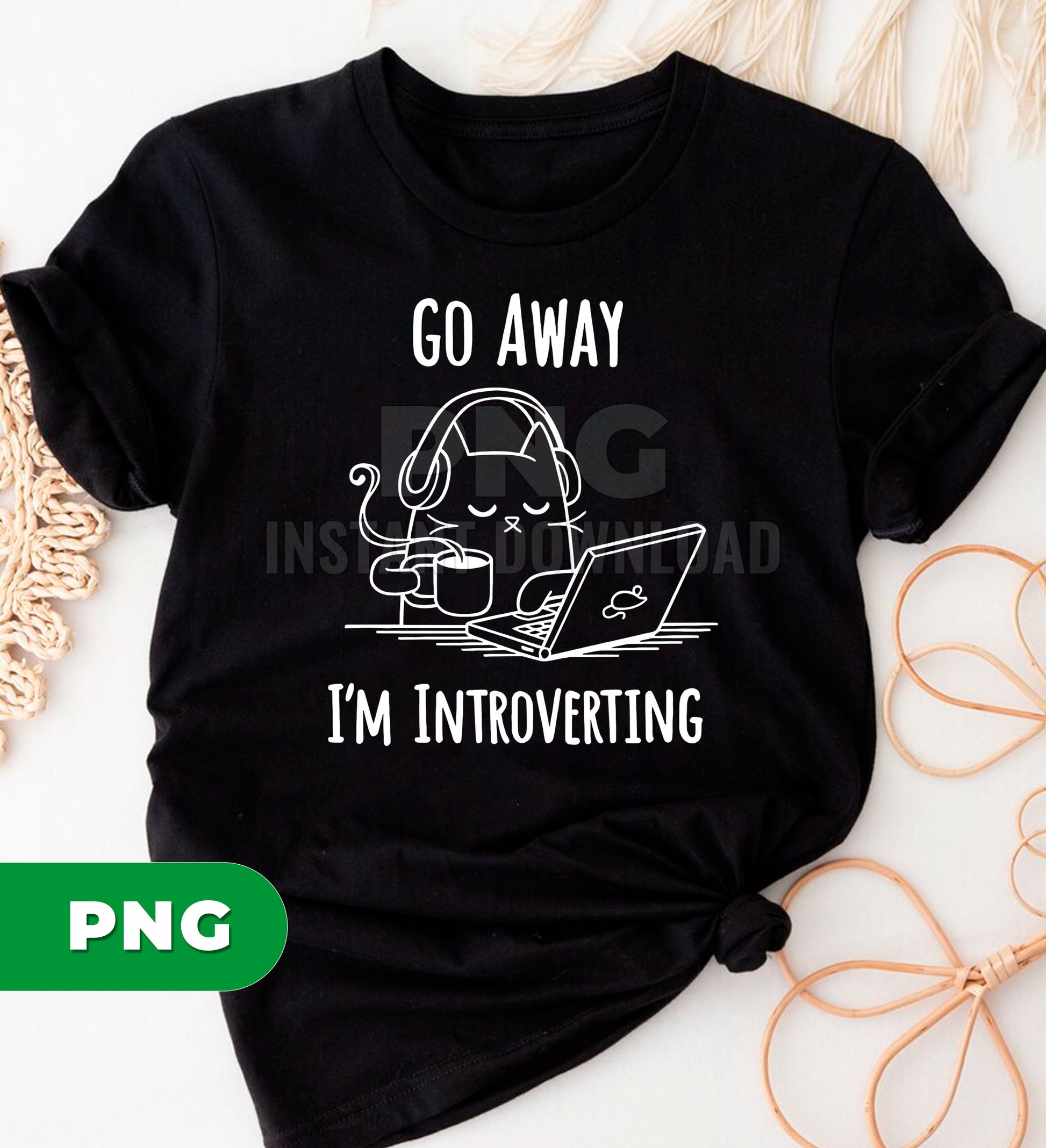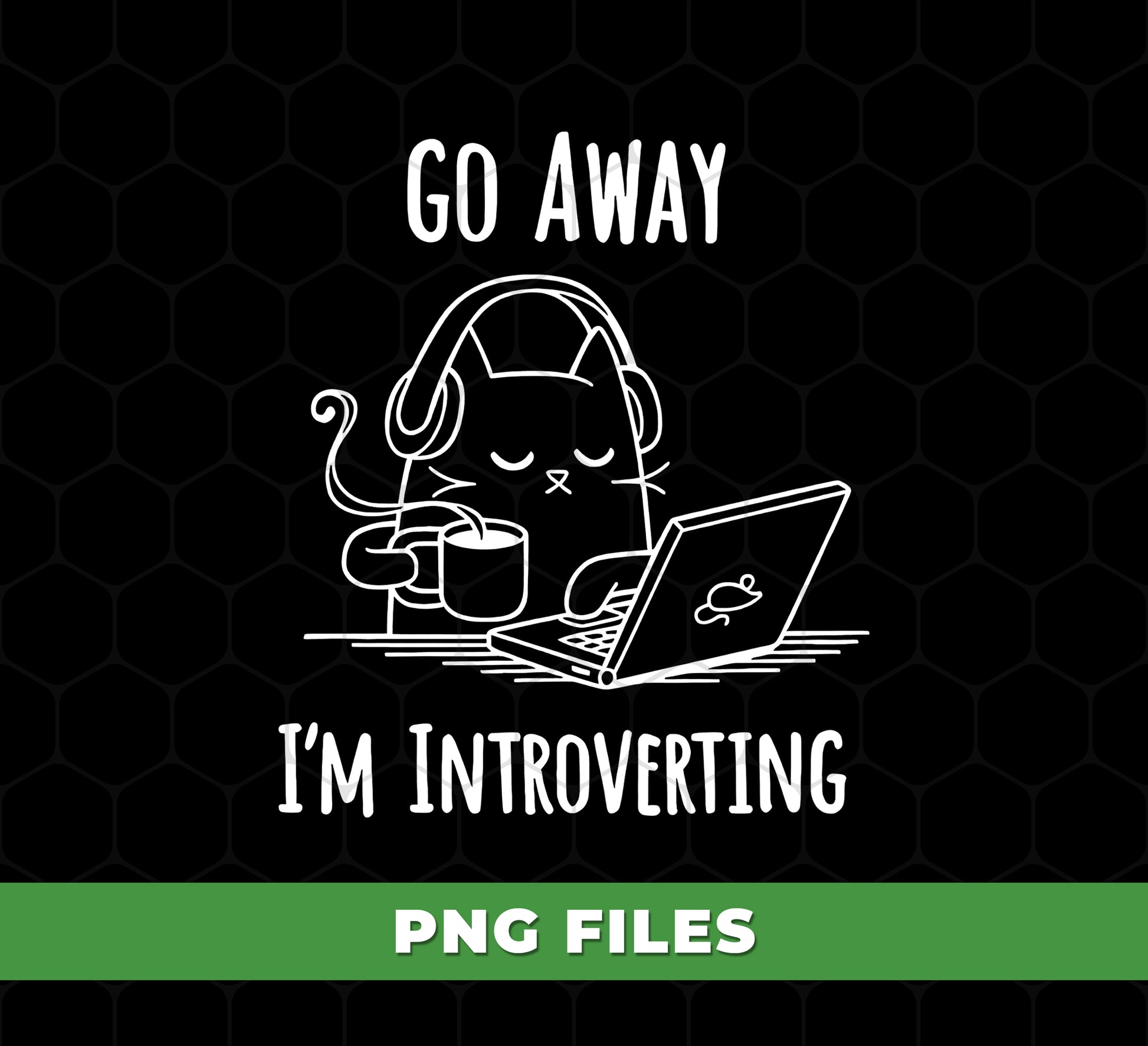 Go Away I’m Introverting Cat PNG, Funny Introvert Cat Clipart, Coffee Laptop Cat Design, Work From Home Humor PNG, Cute Lazy Cat Art