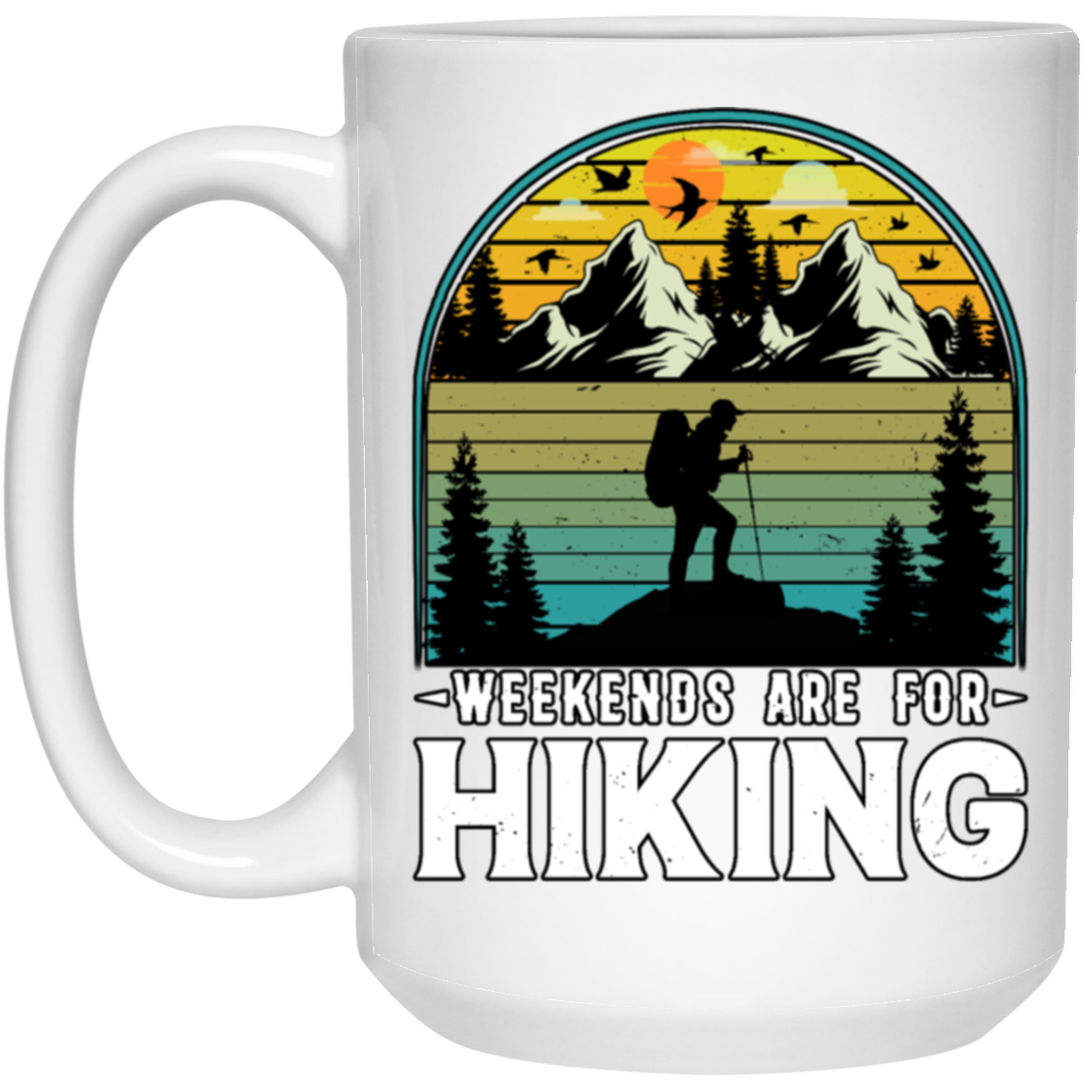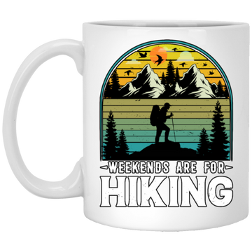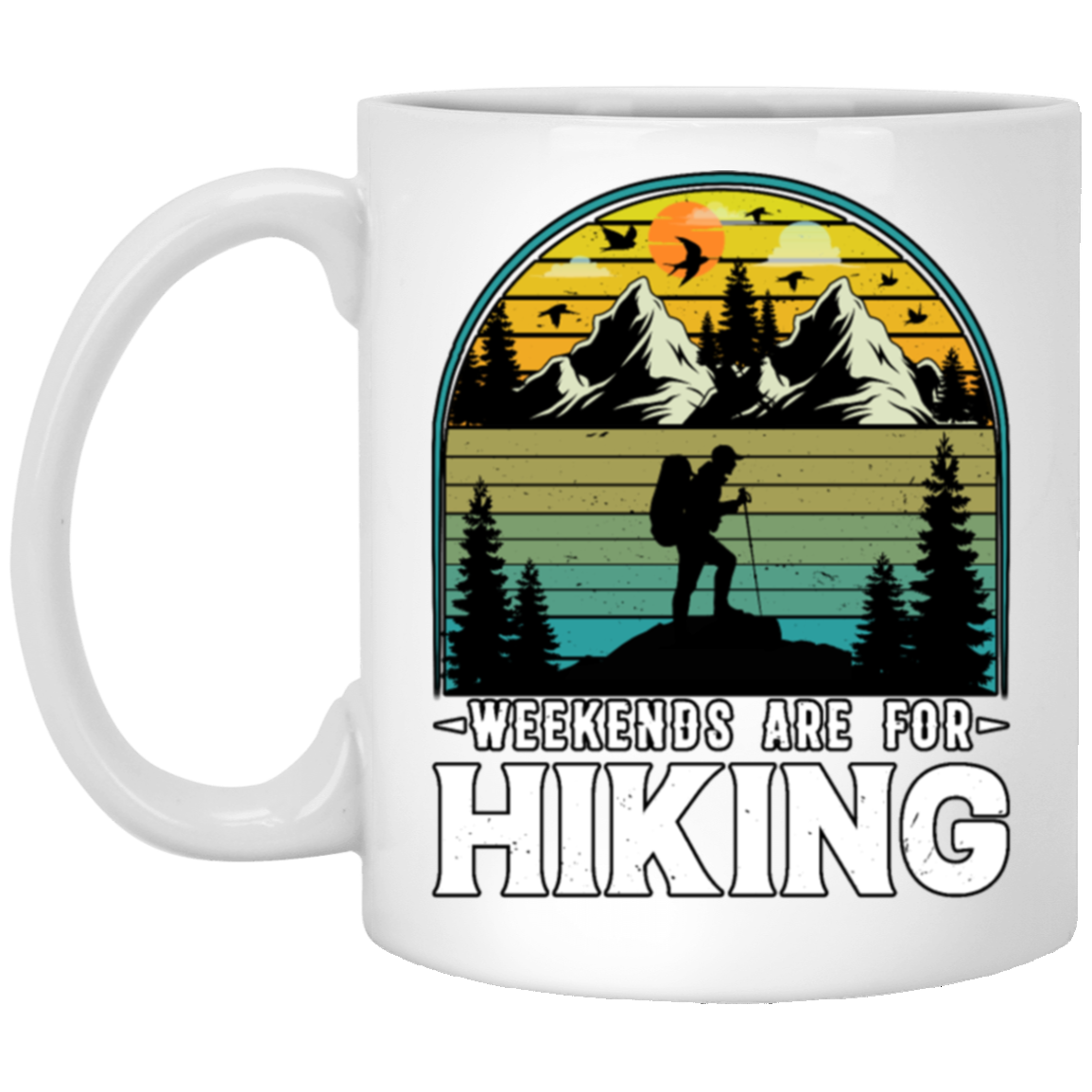 Go Hiking Gift, Weekends Are For Hiking, Retro Hiking Lover, Mountain Love White Mug