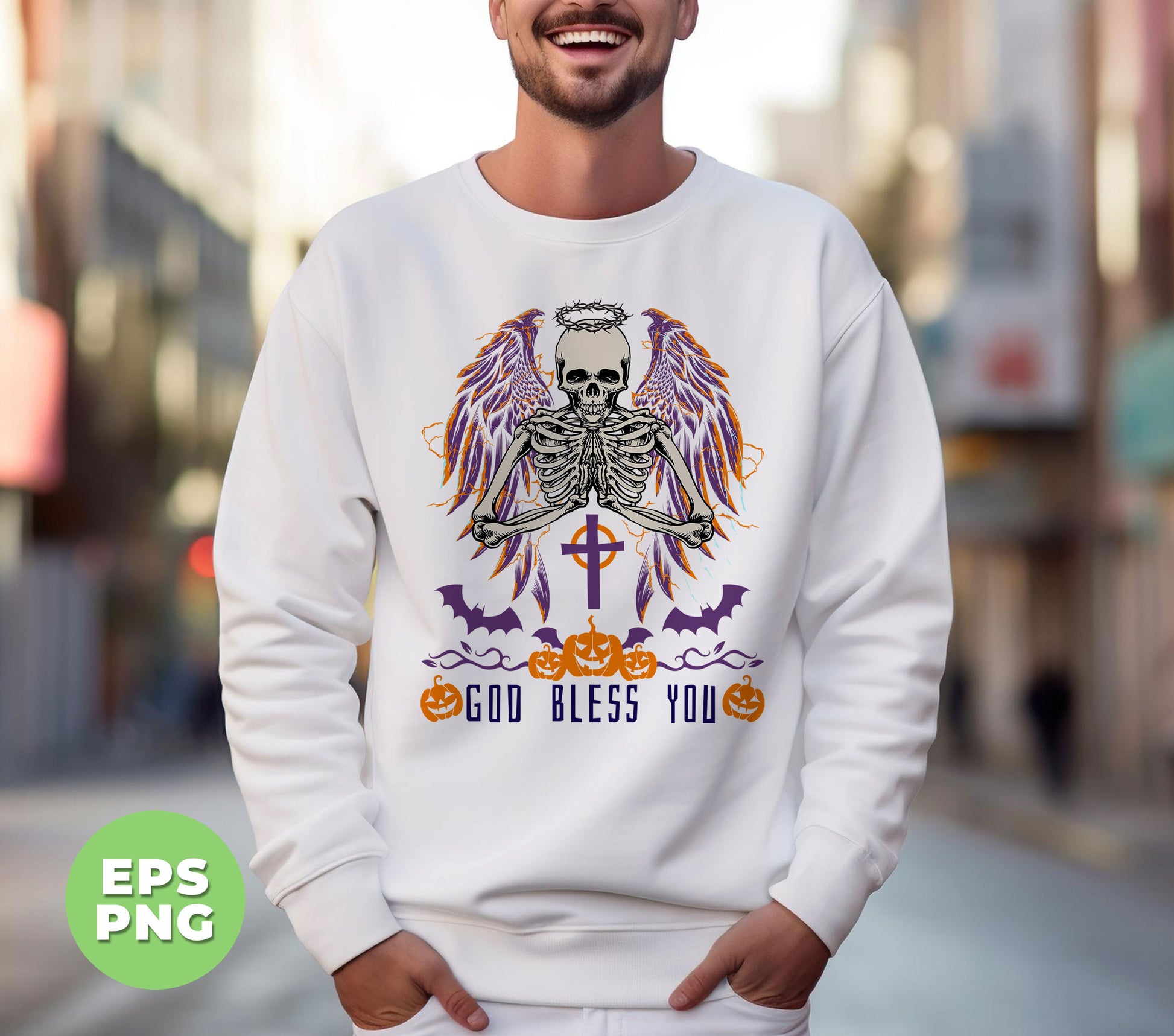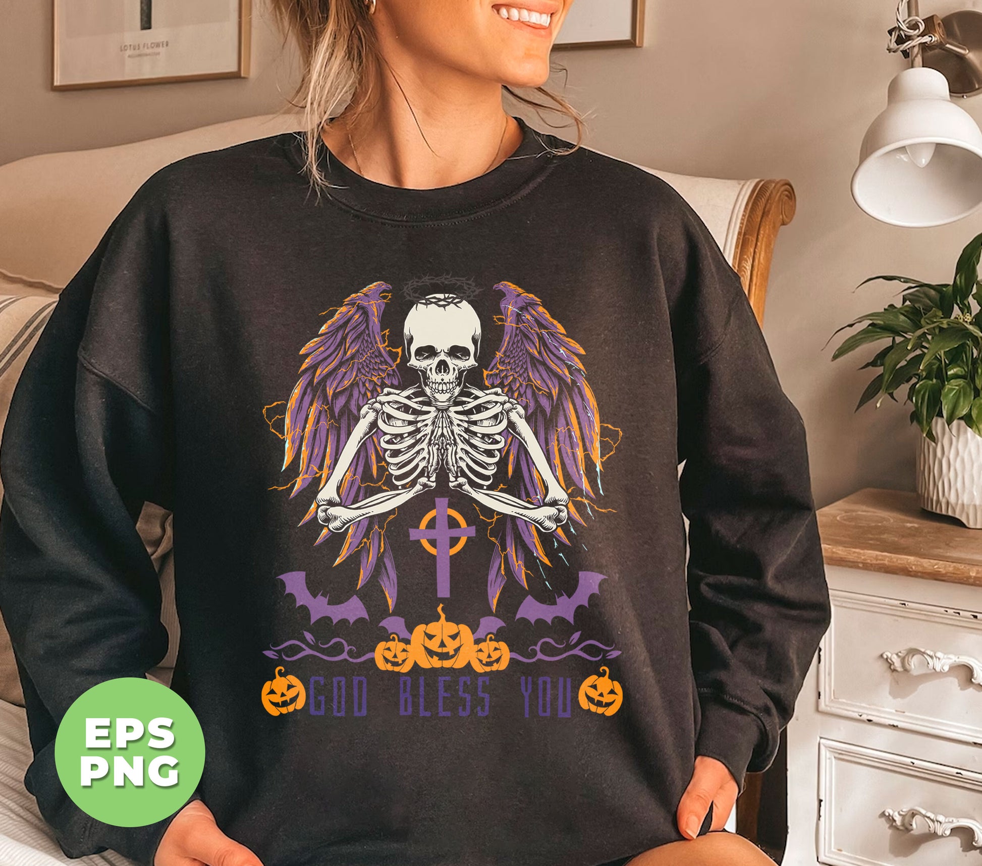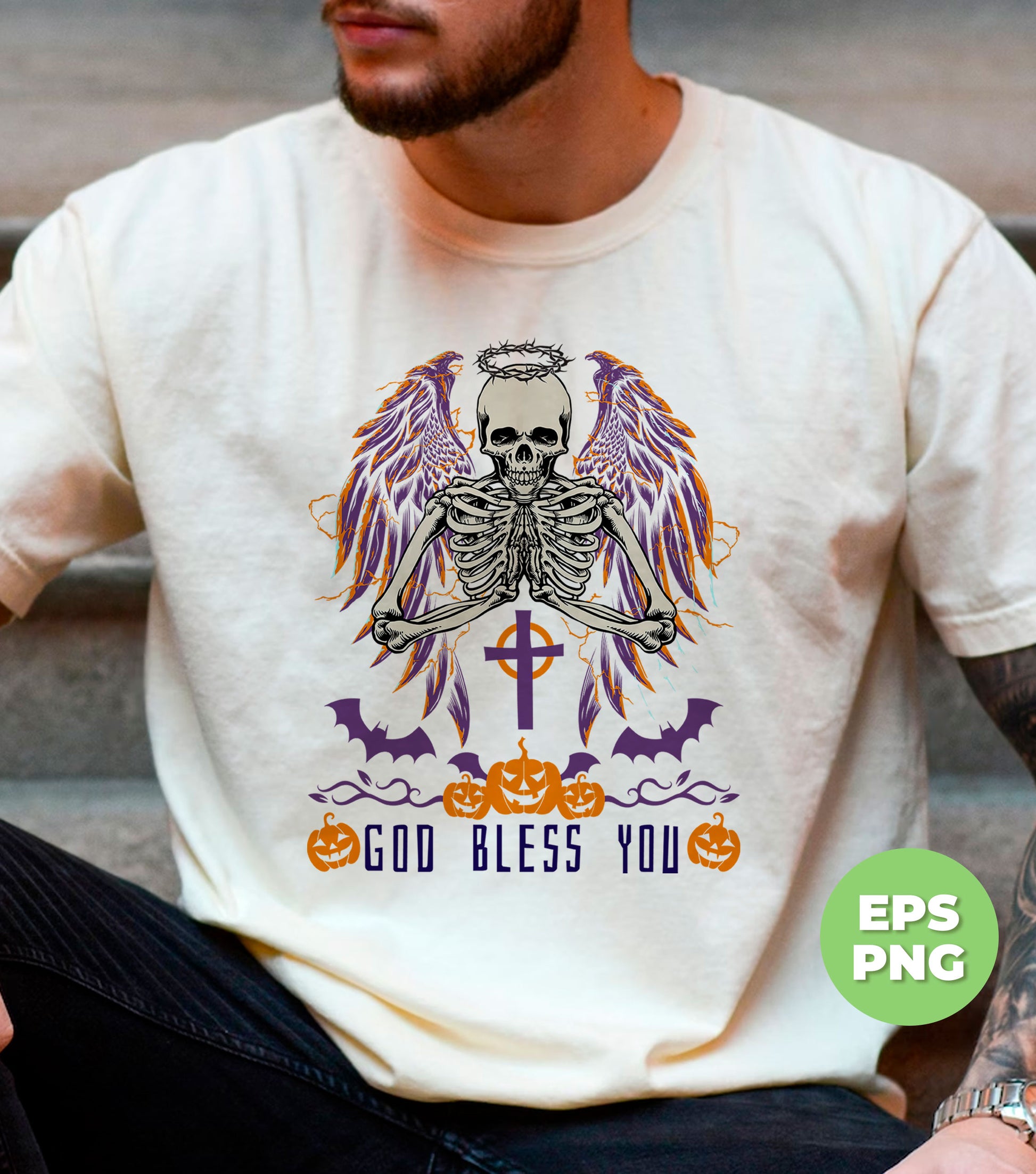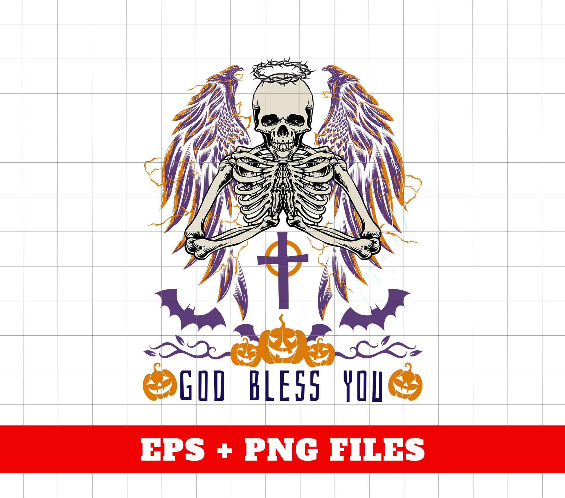 God Bless You, Skeleton With Wings, Happy Halloween, Digital Files, Png Sublimation